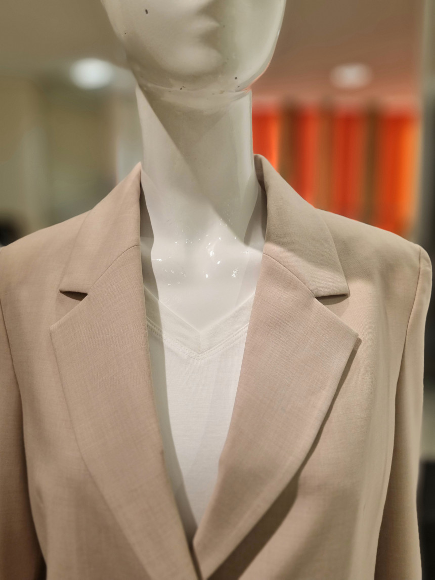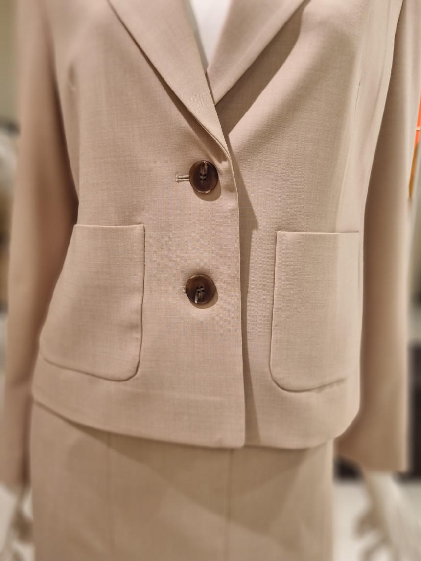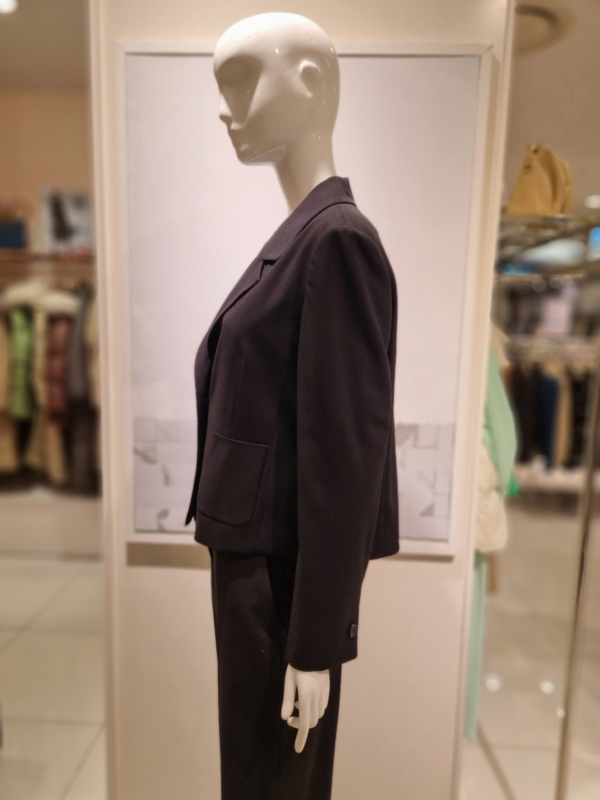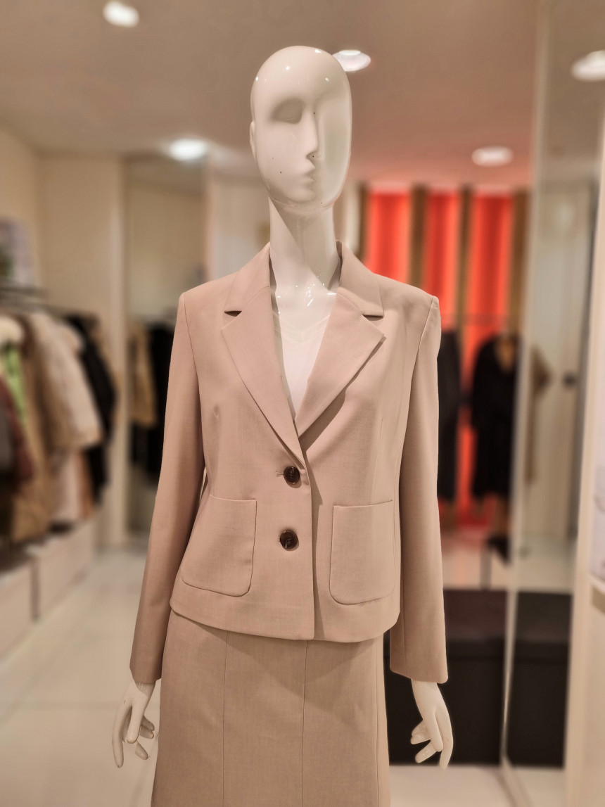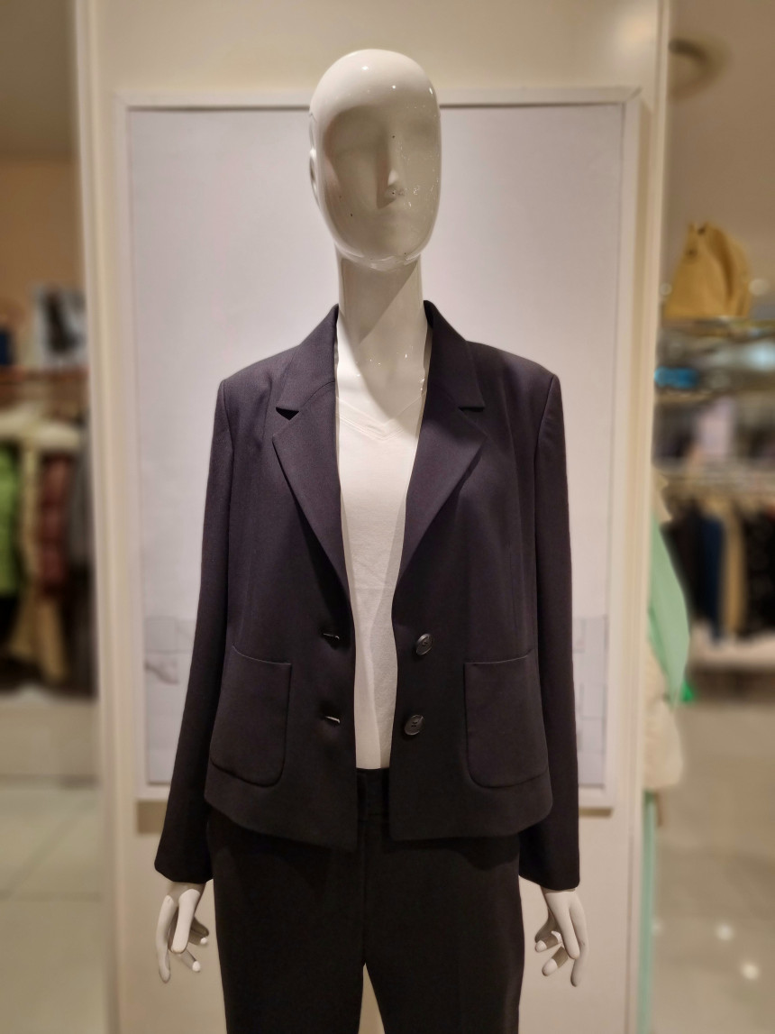 기본카라넥에 안감있는 일자핏 포켓이 포인트로 되어있는 숏한 재킷