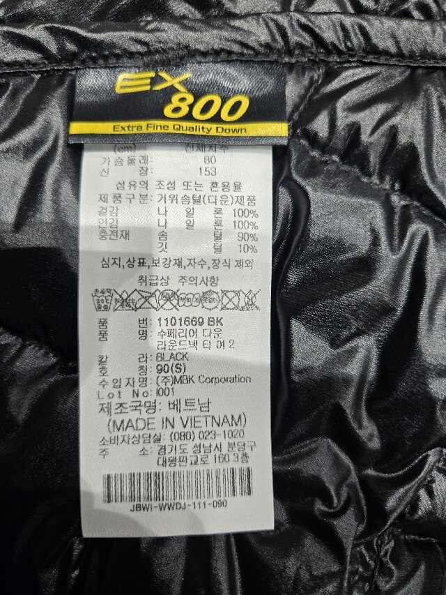 고품질 800필 파워 EX 다운을 부드러운 원단으로 재봉한