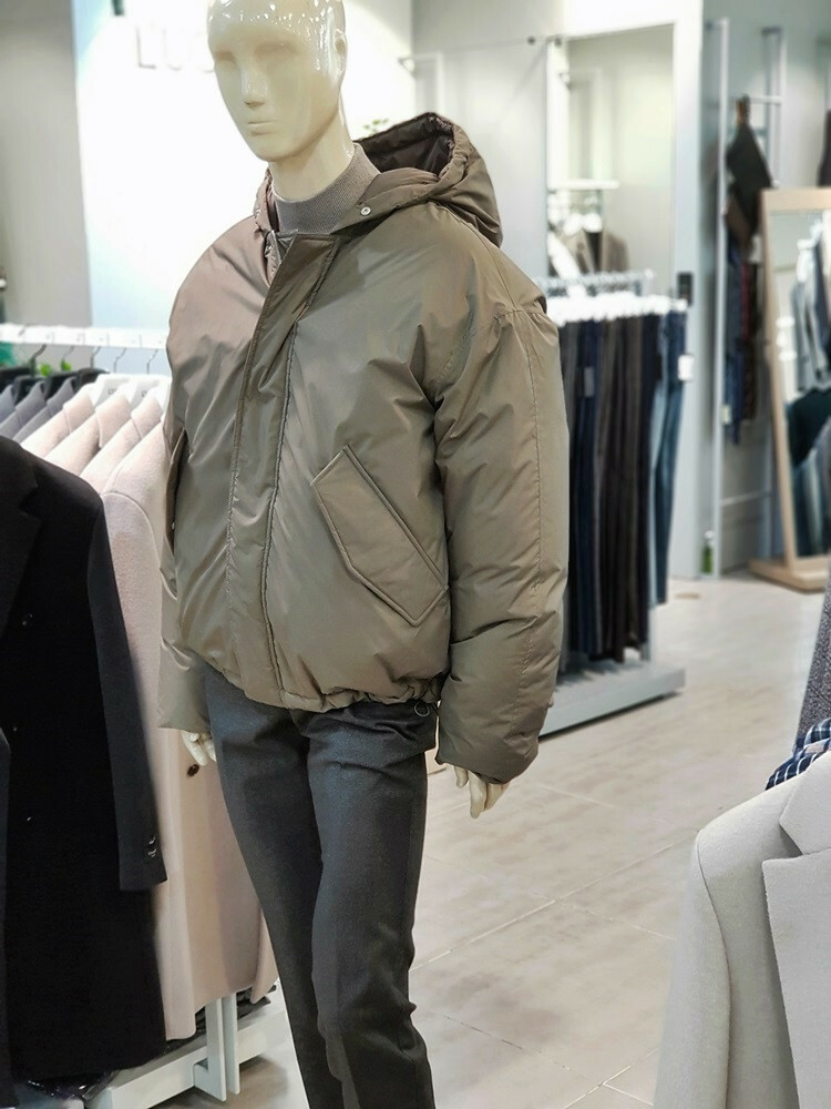 남성 오버핏 구스다운 숏 패딩 깔끔한 느낌의 오버핏 입니다