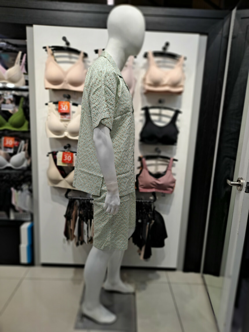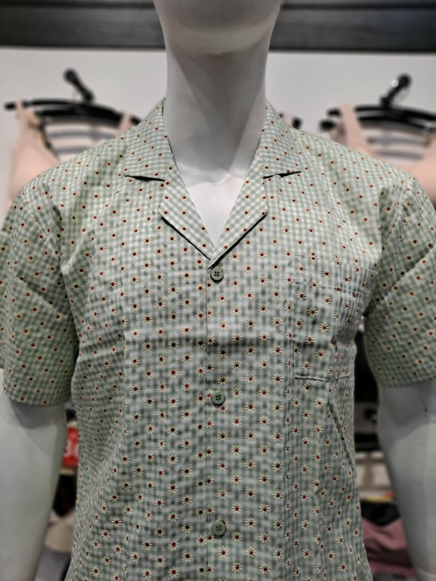 선염체크와 꽃무늬 라바나염이 매치되어 있는 남자 파자마 상하세트.