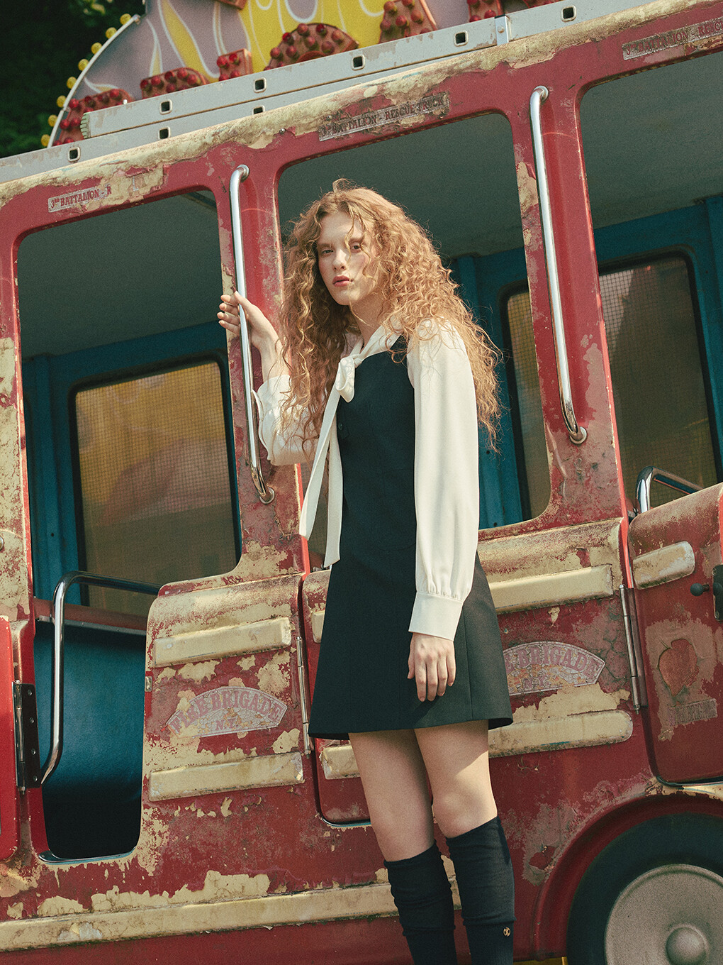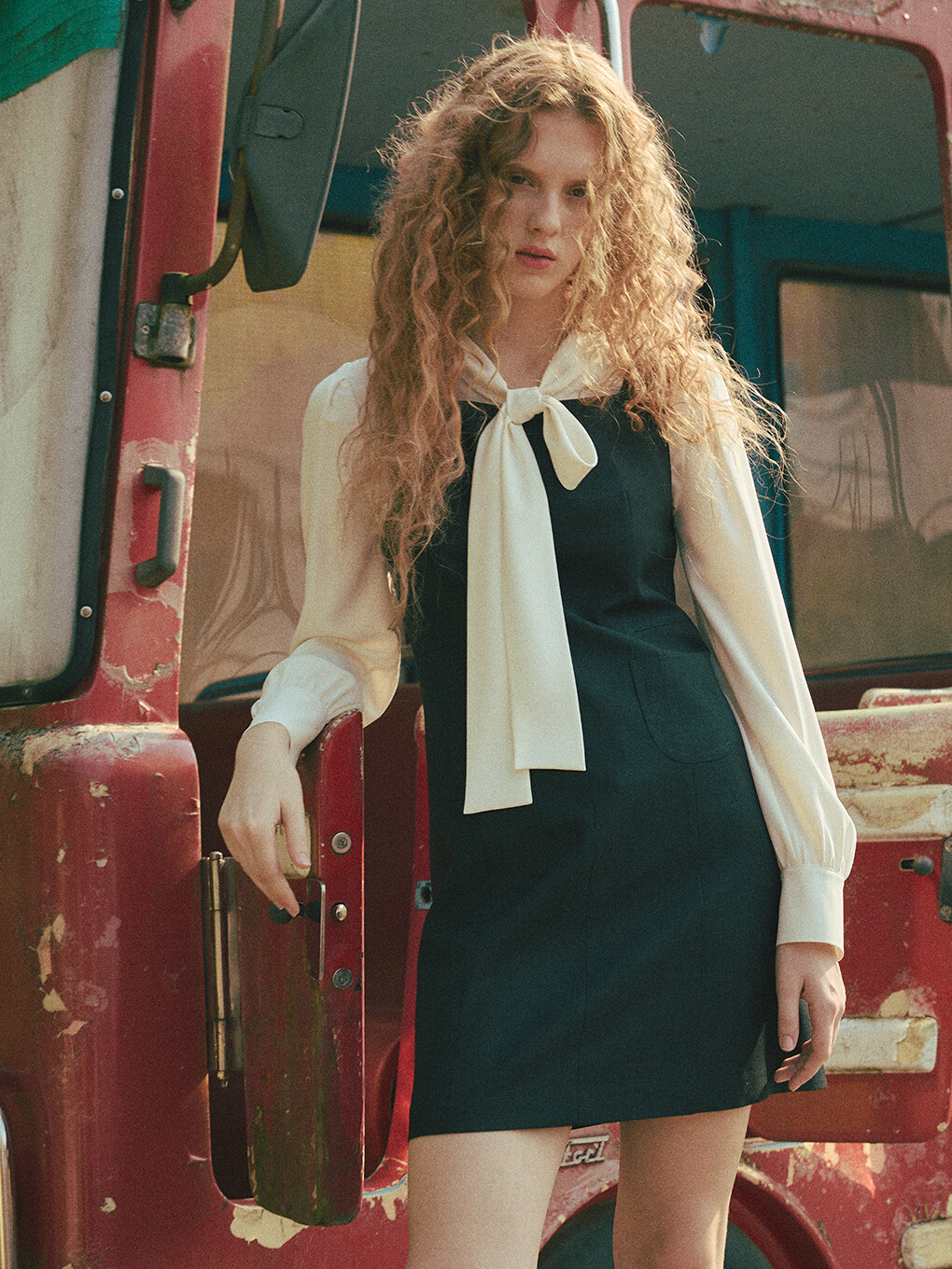 앞뒤 절개와 스티치 느낌이 캐쥬얼하면서 귀여운 무드를 줍니다.