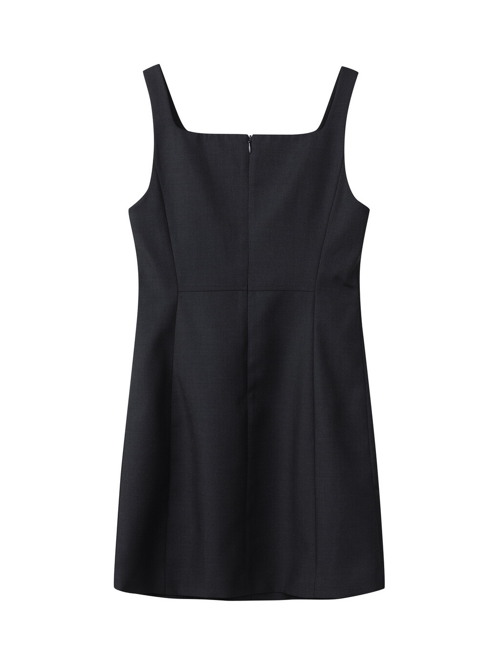 - 미디 기장의 스퀘어넥 슬리브리스 원피스입니다.