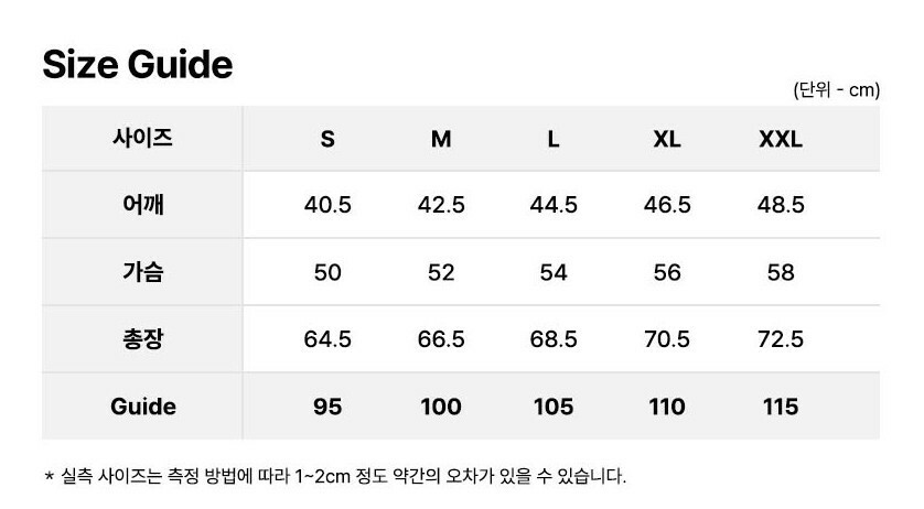 사이즈 : 95(S),100(M),105(L),110(XL),115(XXL)