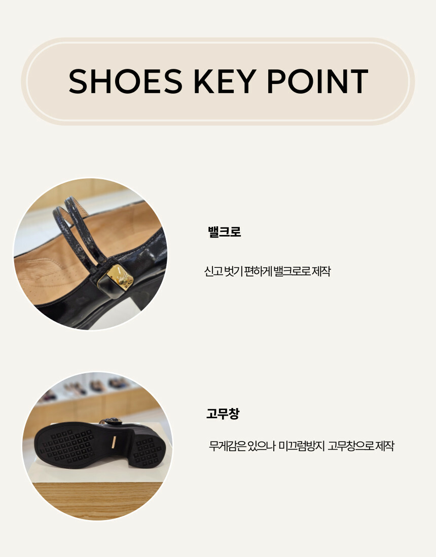 라운드 토 스타일에 스트랩이 포인트인 메리제인 으로