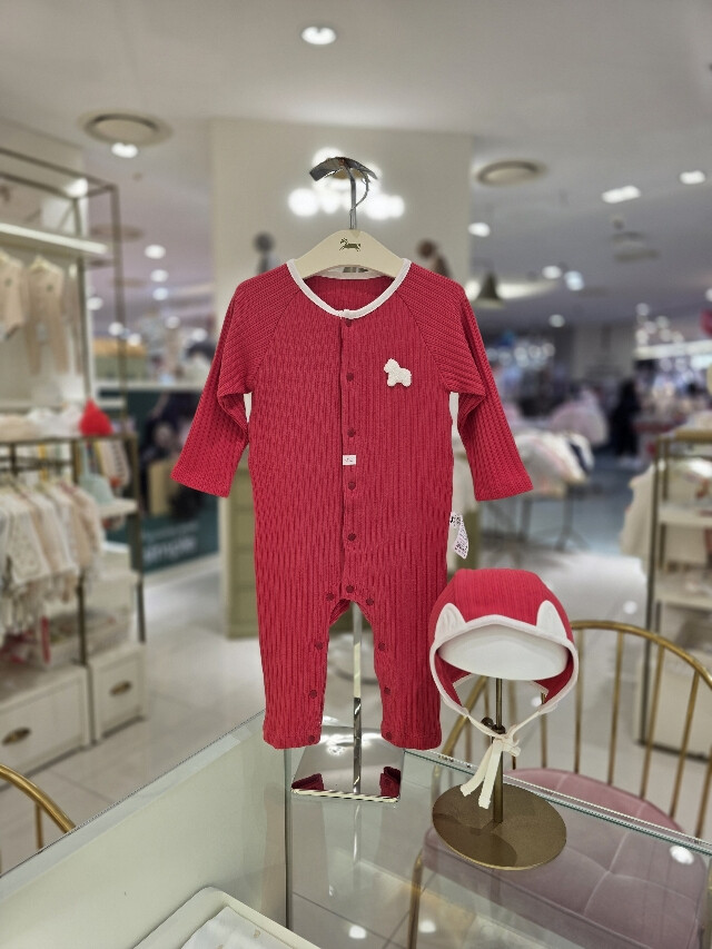편한 골지 소재의 우주복입니다 보넷과 셋트입니다