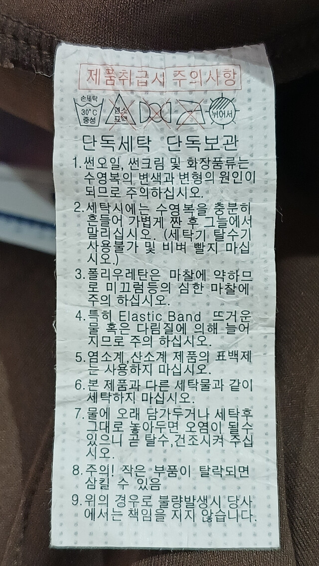 지퍼가 있어 착용이 용이하며 고급스런 브라운컬러가 돋보이는 3부 실내 반신 수영복입니다 .