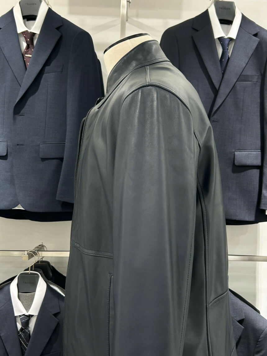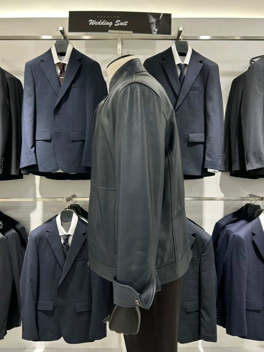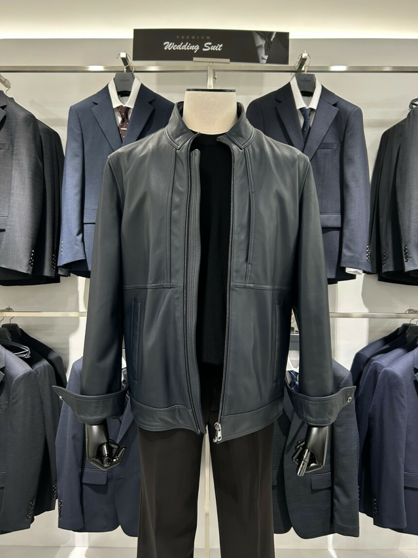 세련된 네이비톤과 자연스러운 리얼 양가죽 소재로 세련된 무드 연출