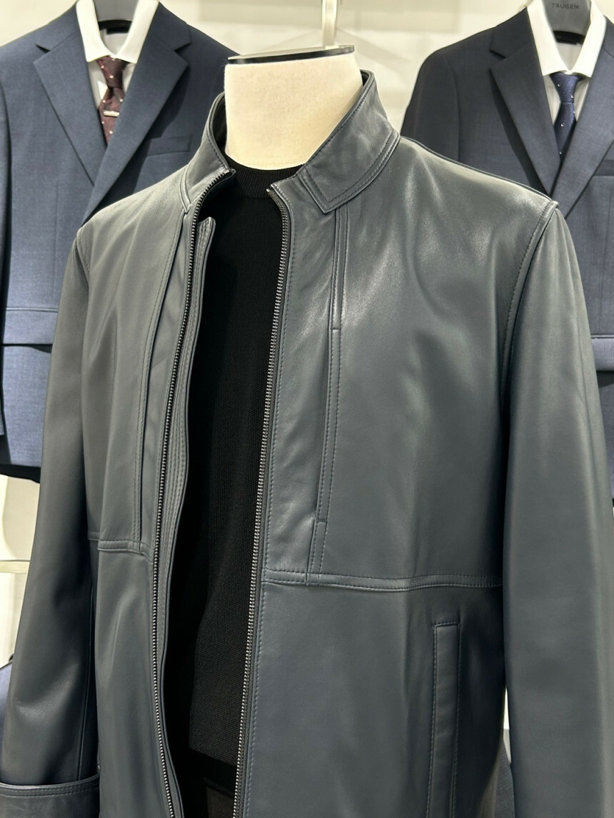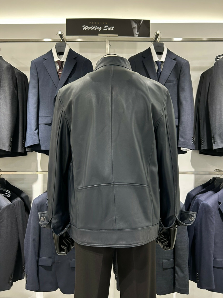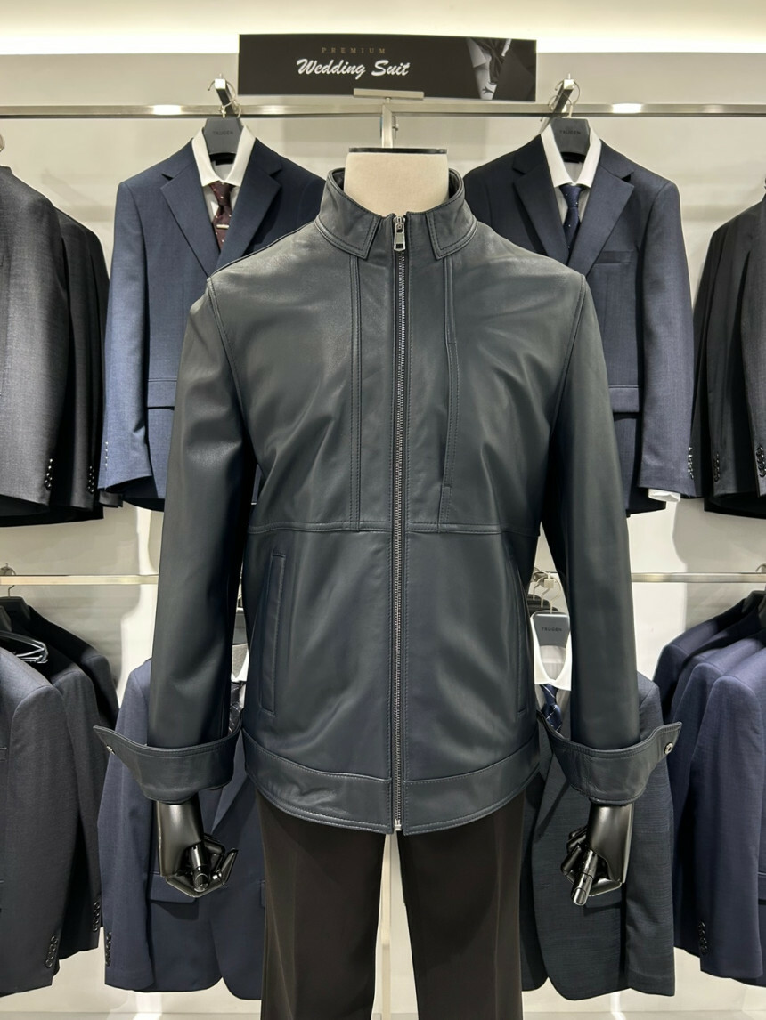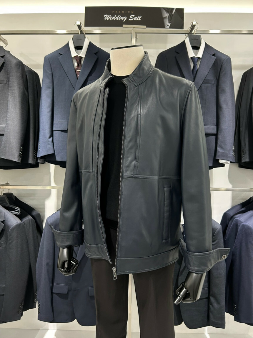 부드럽고 유연한 천연 양가죽 소재를 사용한 베이직 블루종