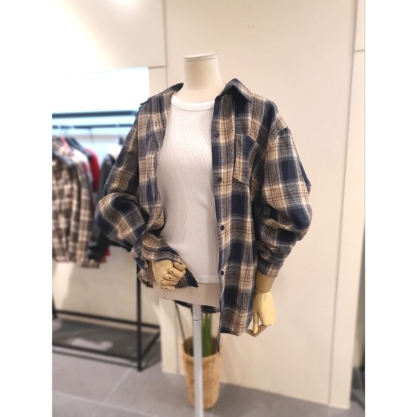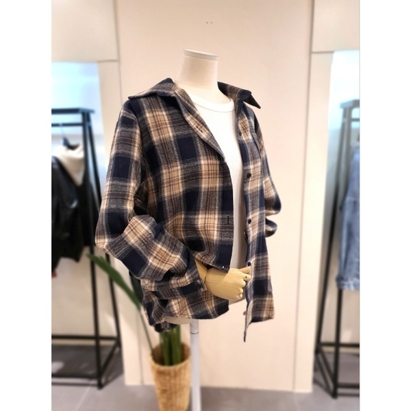 두께감이 있는 원단의 체크 남방입니다. 아우터로 활용하기도 좋습니다.