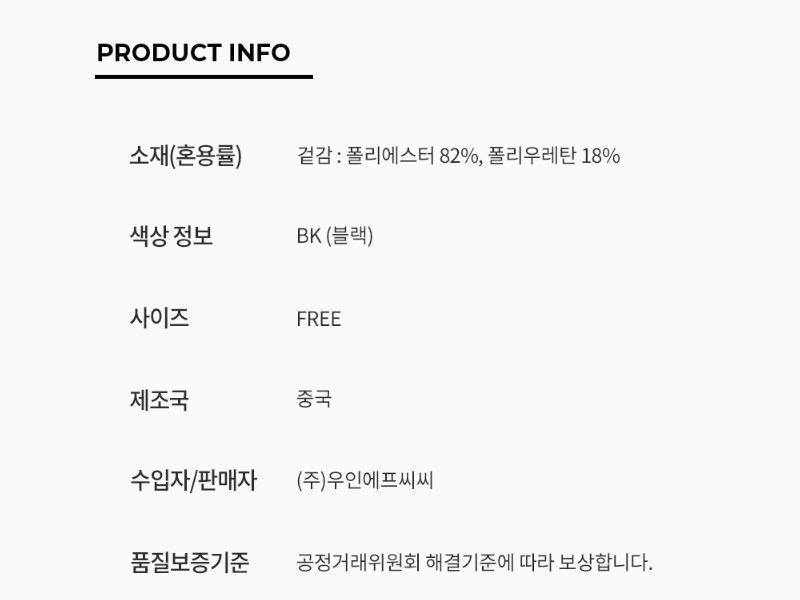 재질 : 겉감 폴리에스터 82 폴리우레탄 18