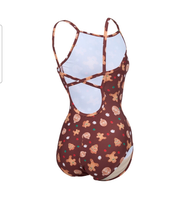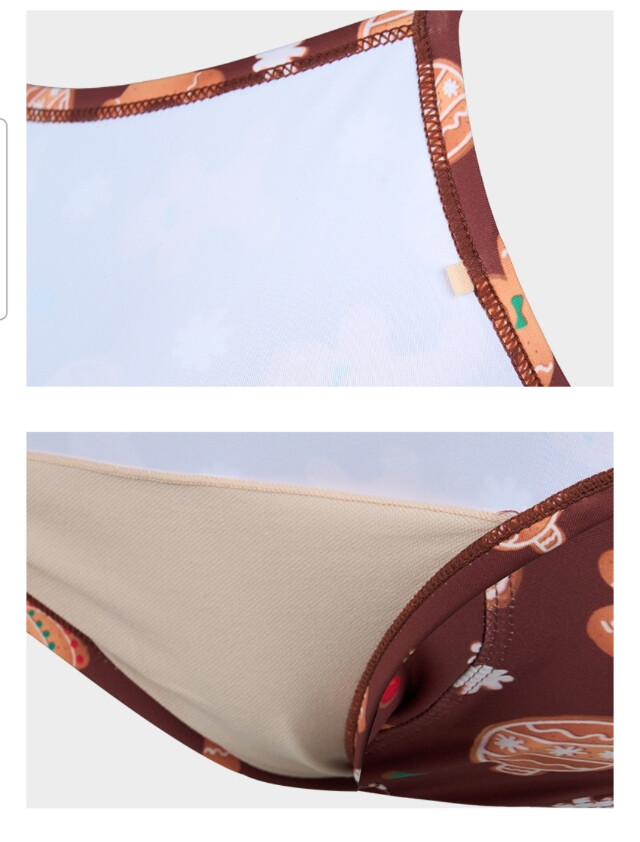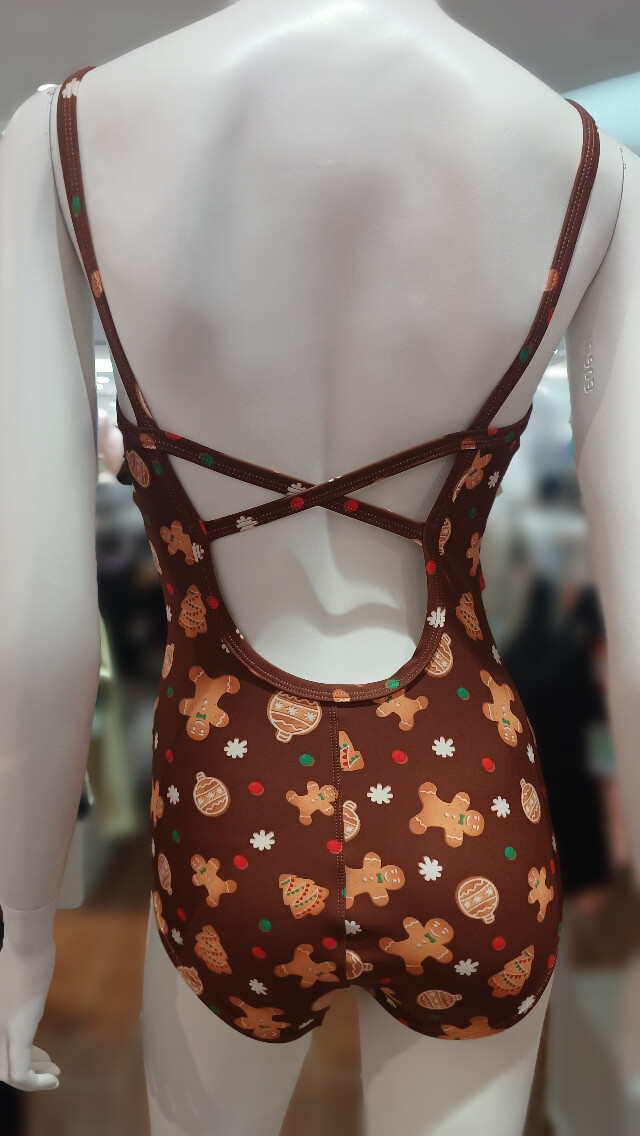 귀여운 쿠키 프린팅이 돋보이는 U백 미들컷 수영복입니다.