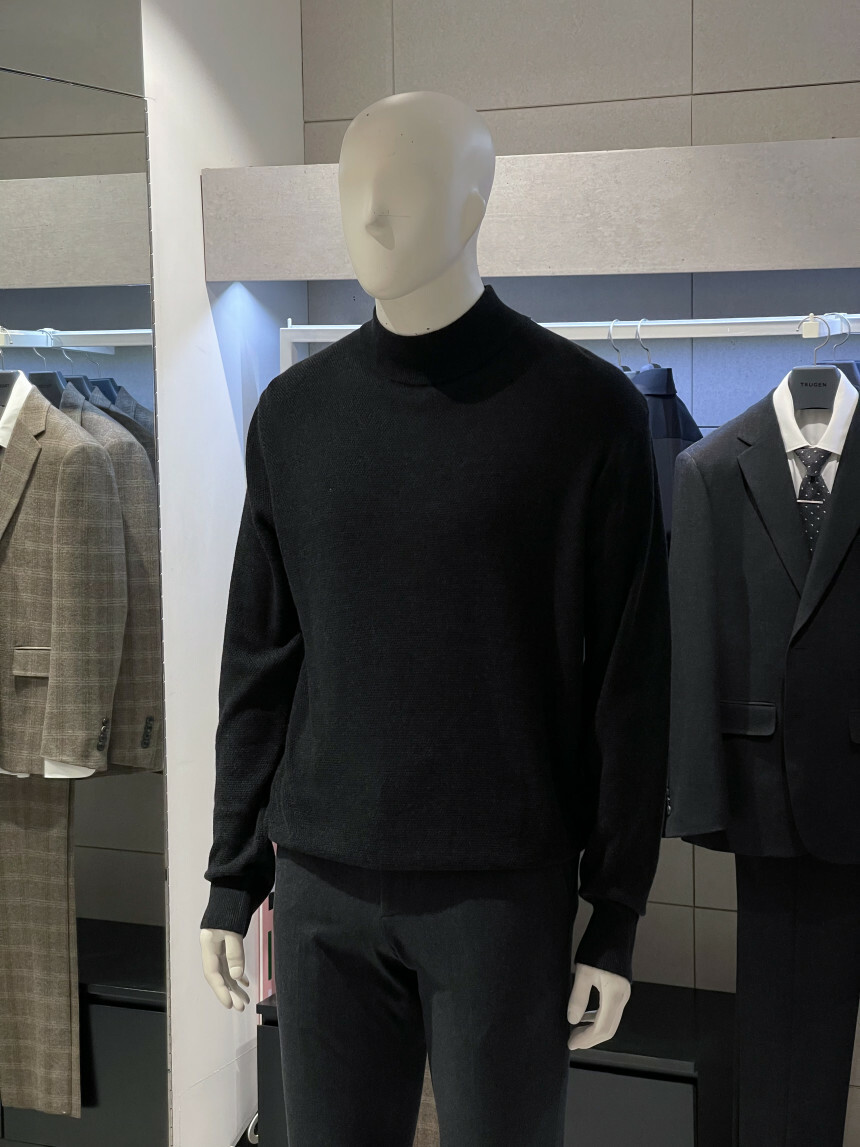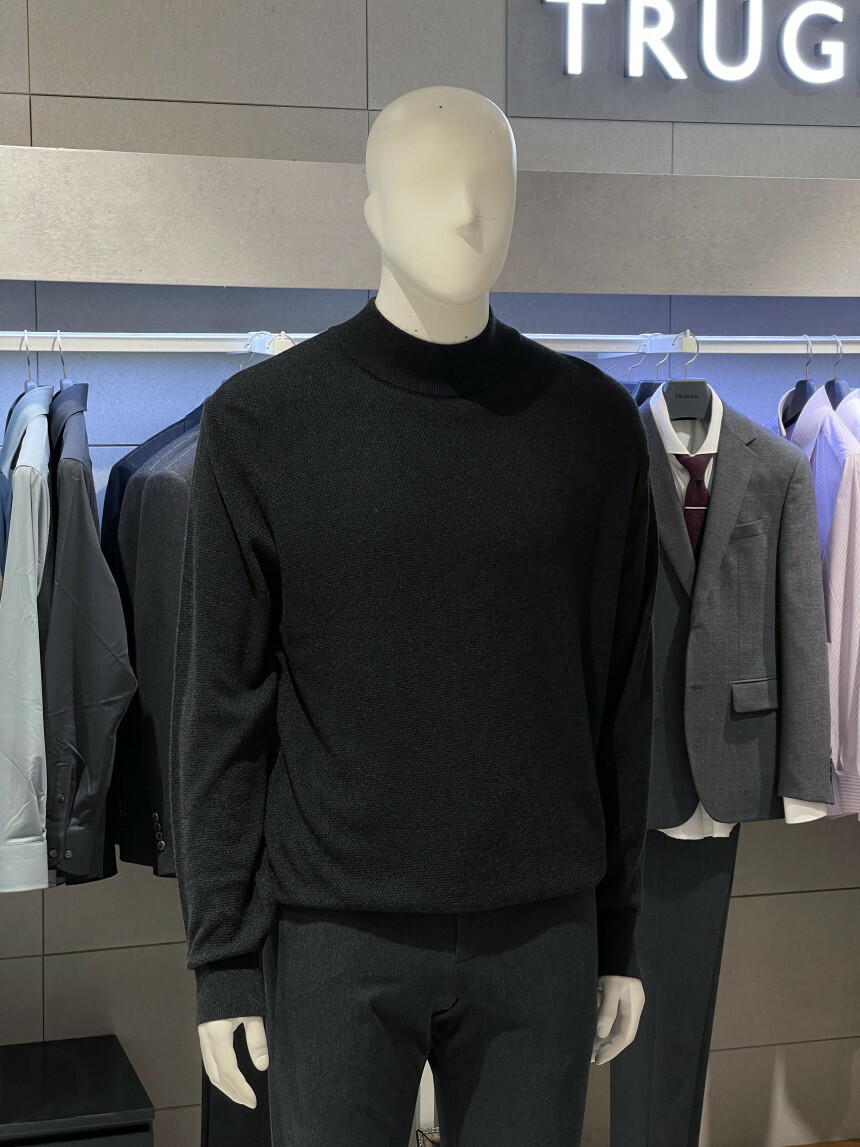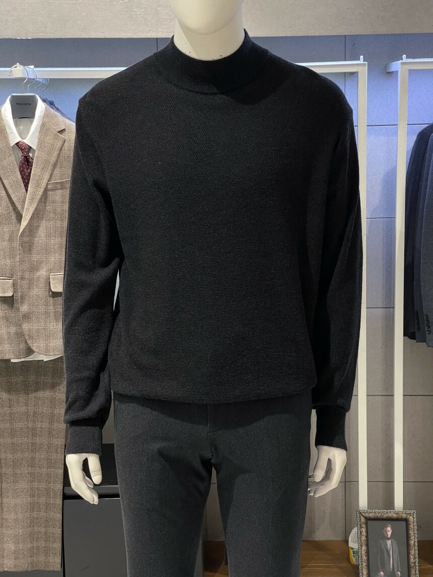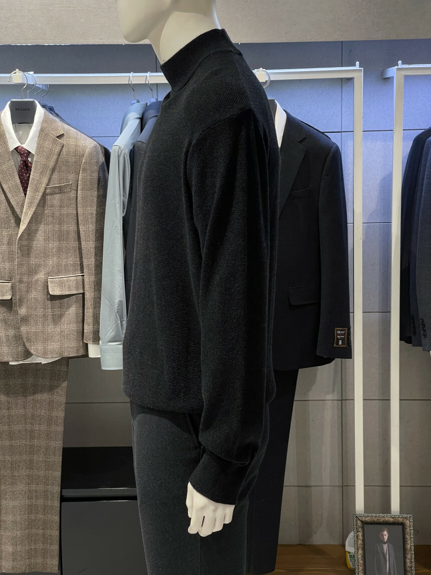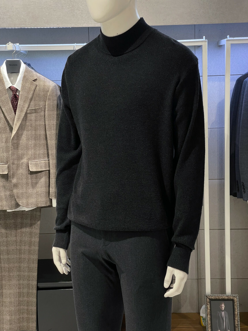 ·겉면 캐시미어 혼방으로 부드러운 터치감의 기본 하프폴라 반목 니트티셔츠