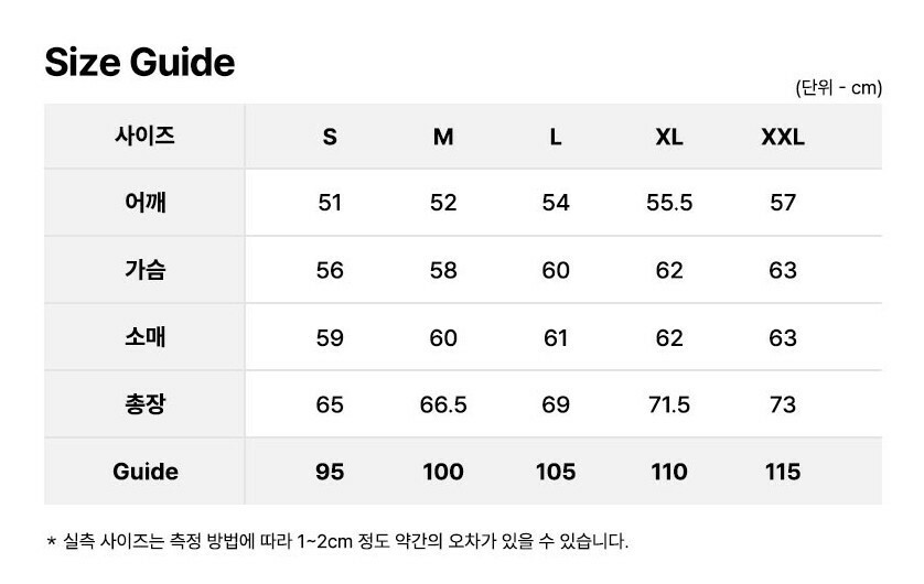 사이즈 : 95(S),100(M),105(L),110(XL),115(XXL)