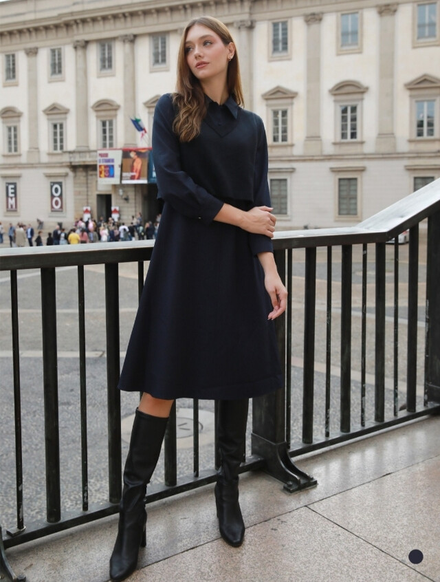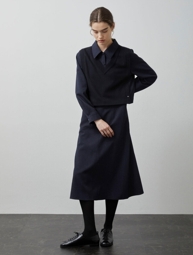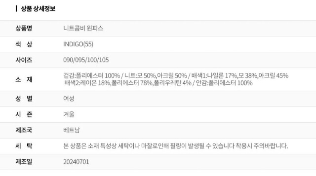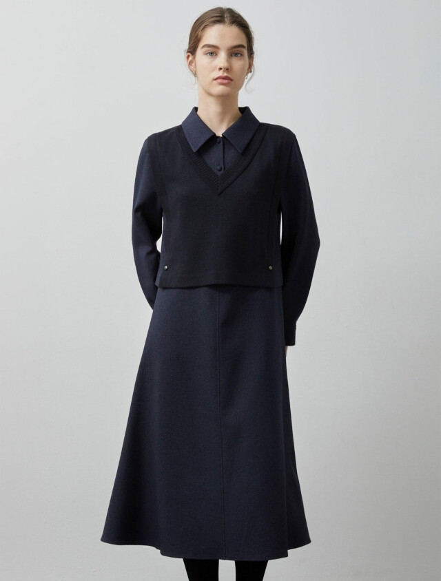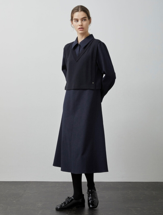 편안한 실루엣의 니트 콤비형 원피스입니다