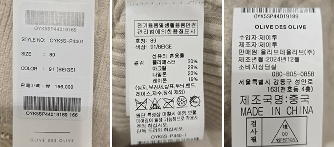 겉감:폴리에스터30%아크릴28%나일론23%레이온19%