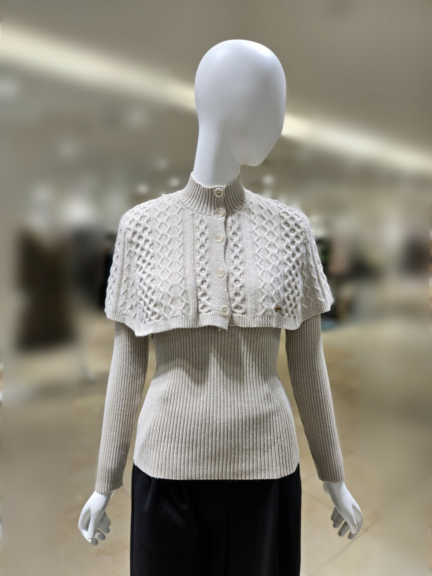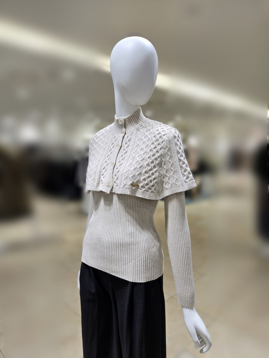 케이프 V넥 골지 니트 세트 YK5S-P440