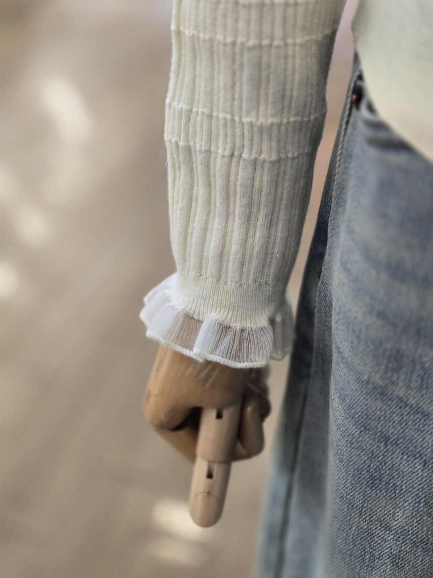 프릴이 넥,소매쪽에 포인트로 여성스럽게 되어있는