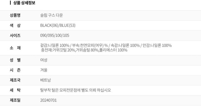 구스다운으로 착용감이 아주 가볍고 따뜻하며 다운