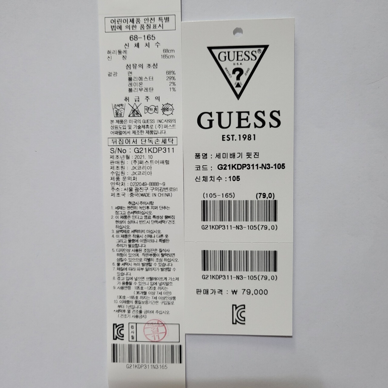 *혼용율: 겉감 : 면 68% 폴리에스터 29% 레이온 2% 폴리우레탄 1%