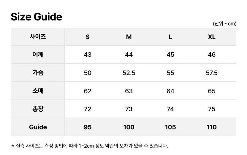 사이즈 : 95(S),100(M),105(L),110(XL)