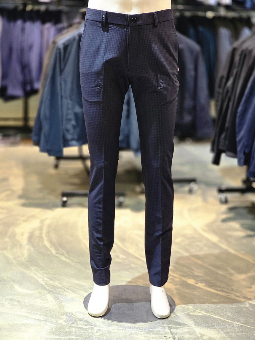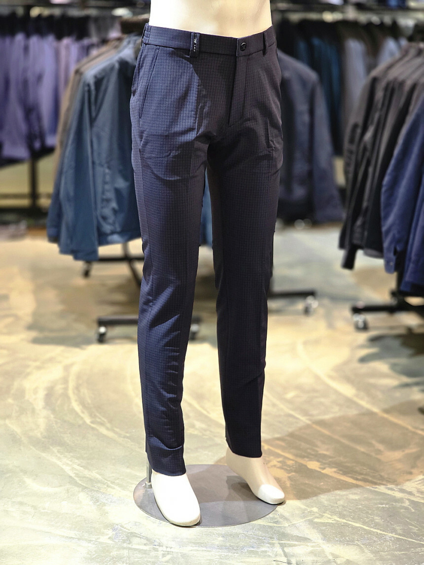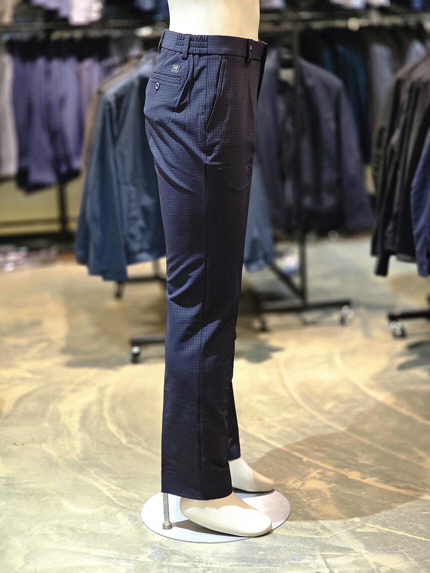 세련된 잔체크 패턴이 돋보이는 체크 패턴 밴딩 바지입니다.