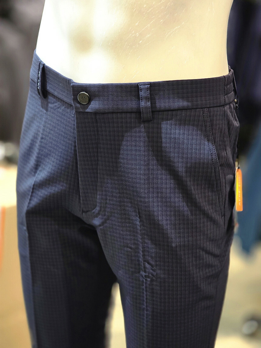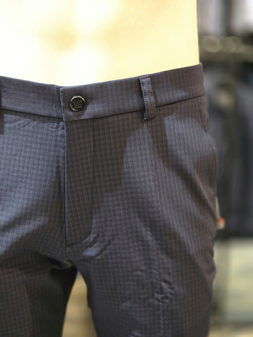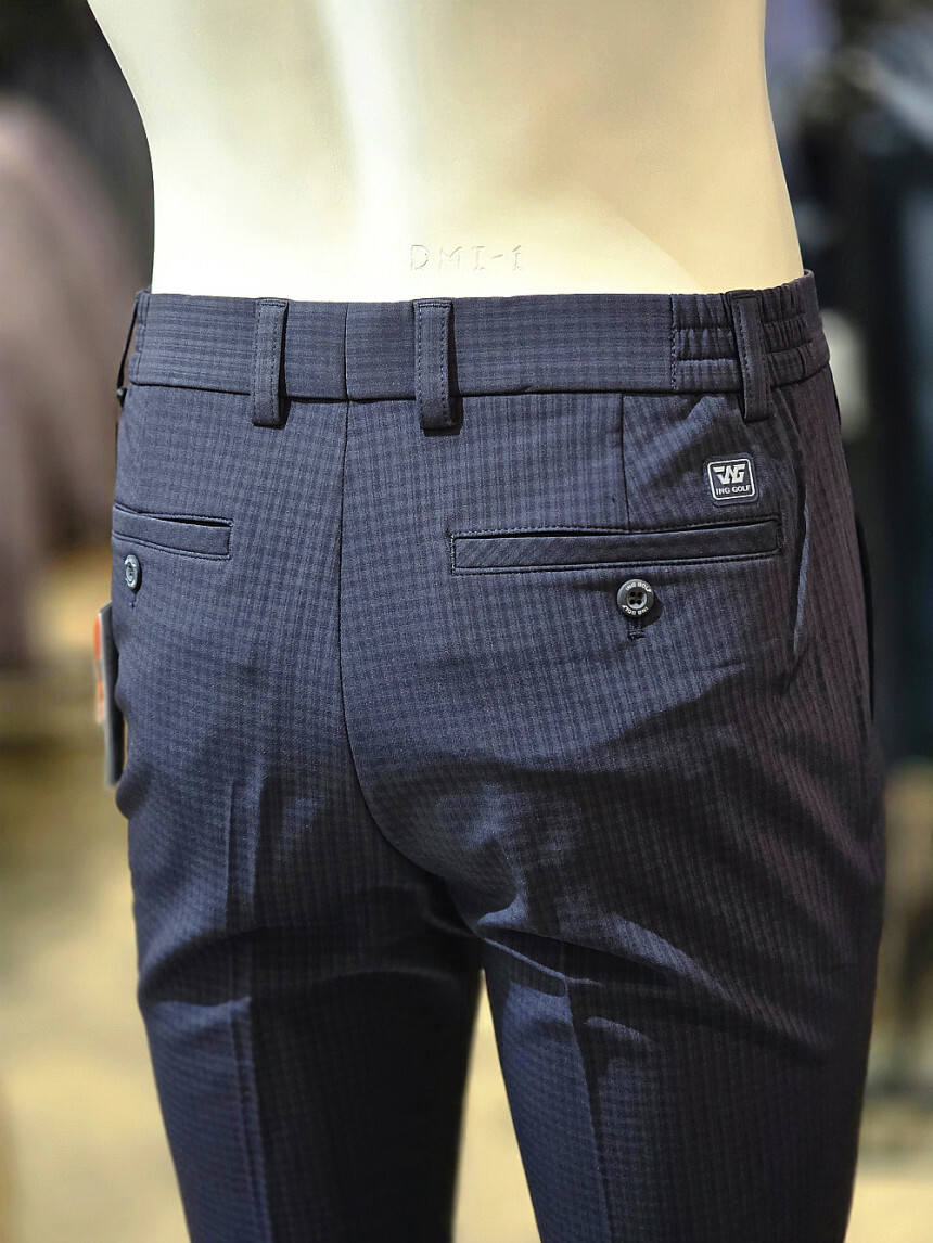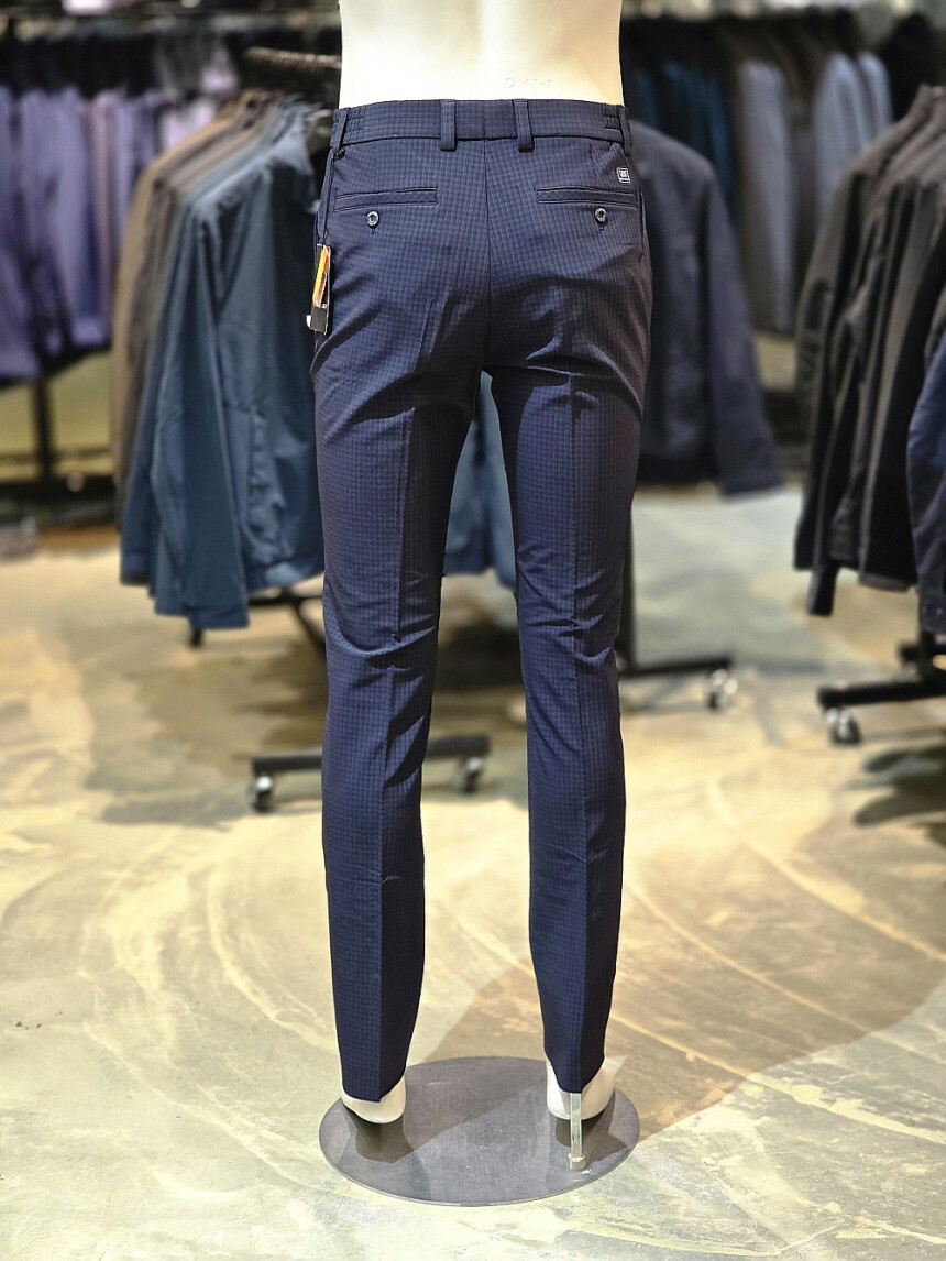 세련된 잔체크 패턴이 돋보이는 체크 패턴 밴딩 바지입니다.