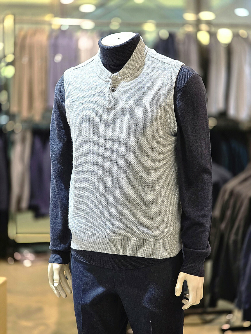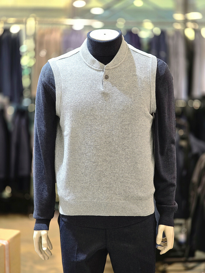 깔끔한 솔리드 디자인으로 제작된 방모 베스트입니다.