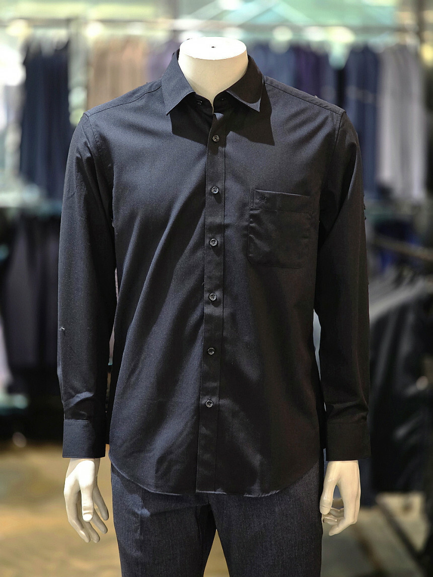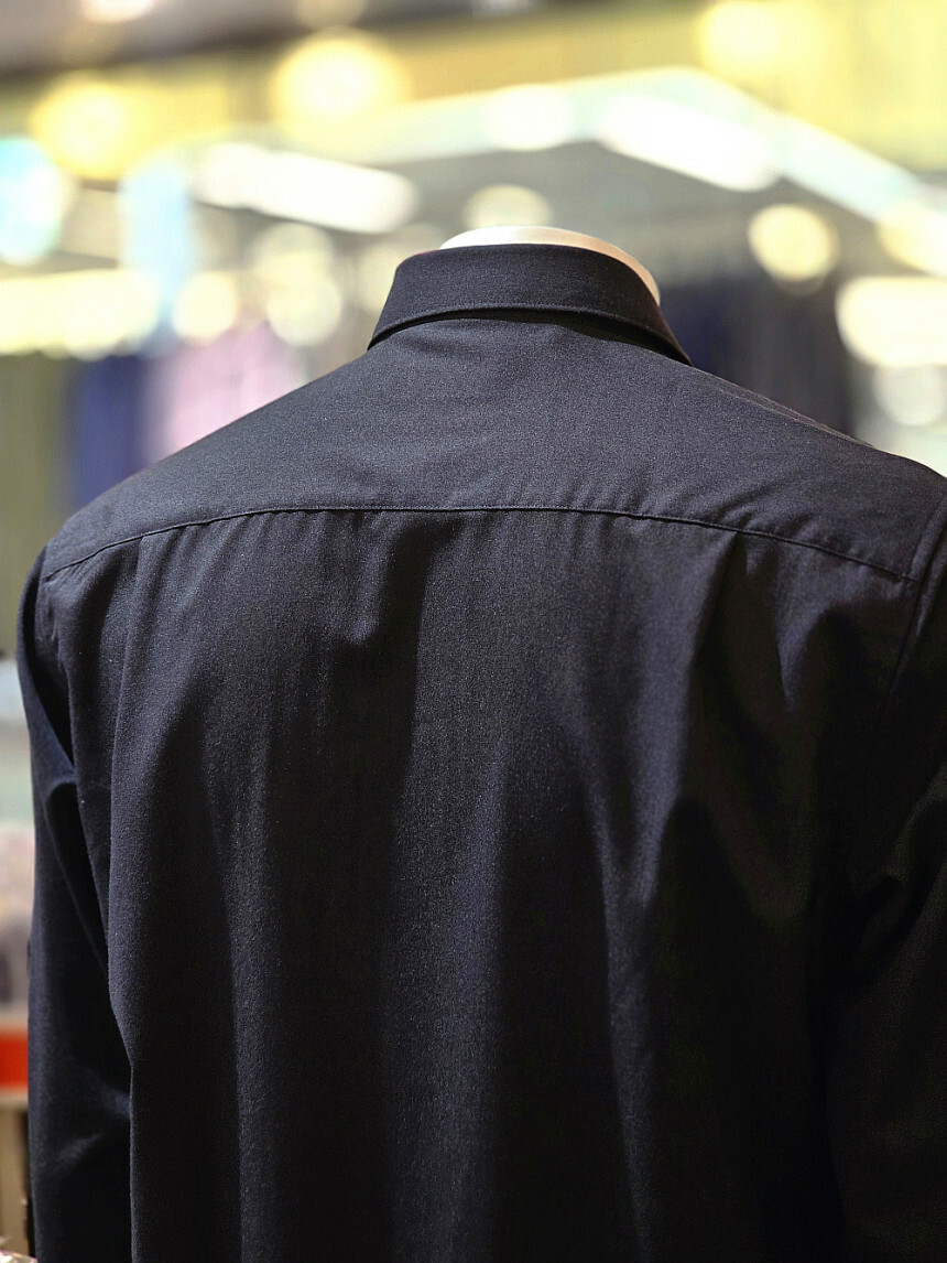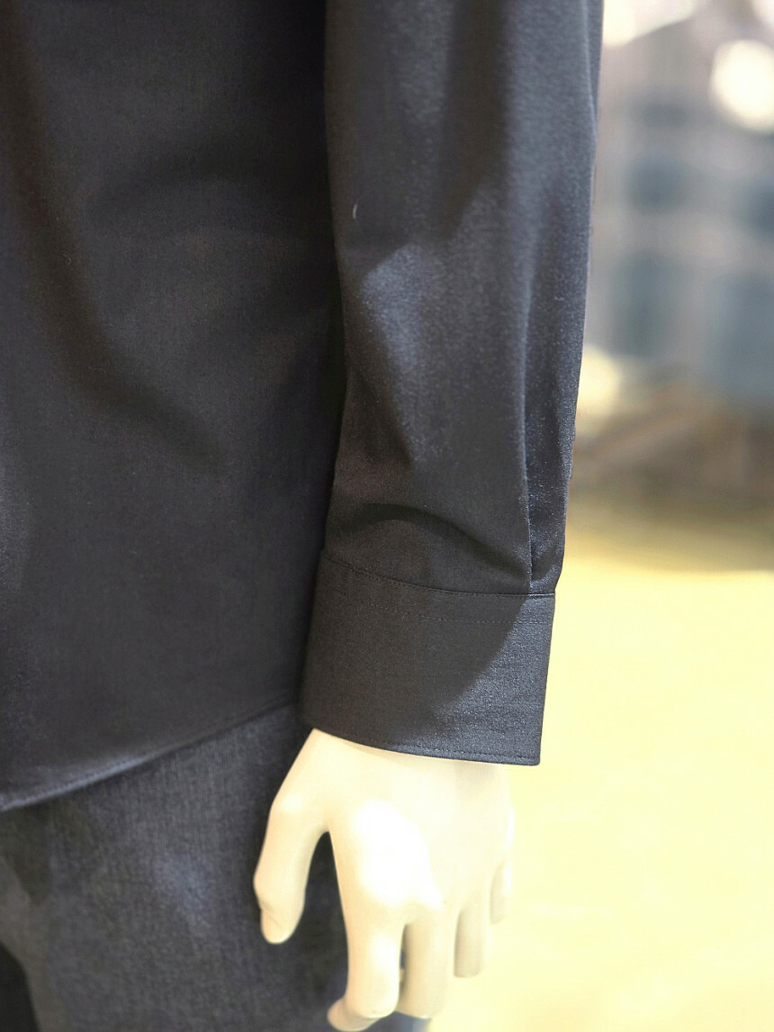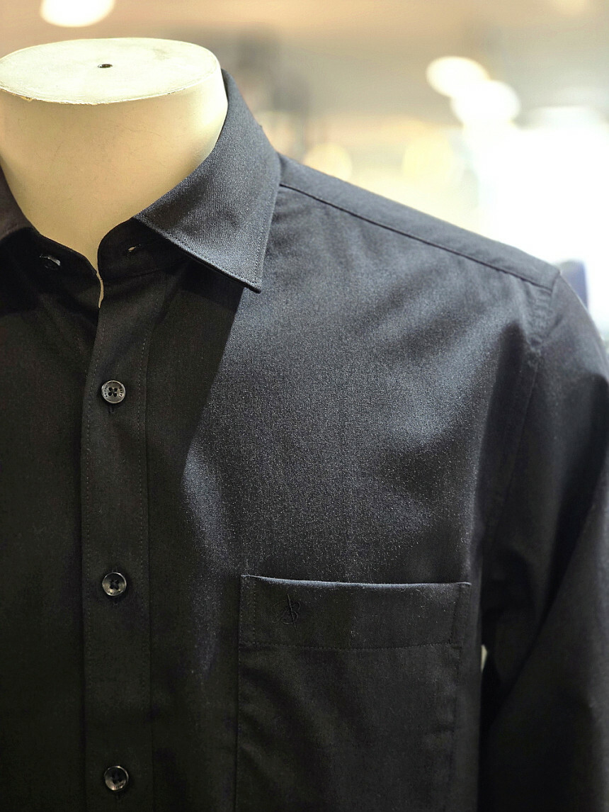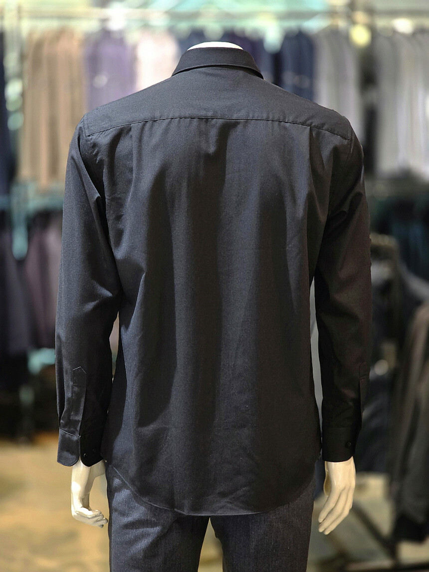 깔끔하고 세련된 무드가 돋보이는 블랙 컬러 셔츠입니다.