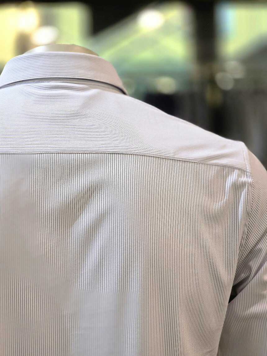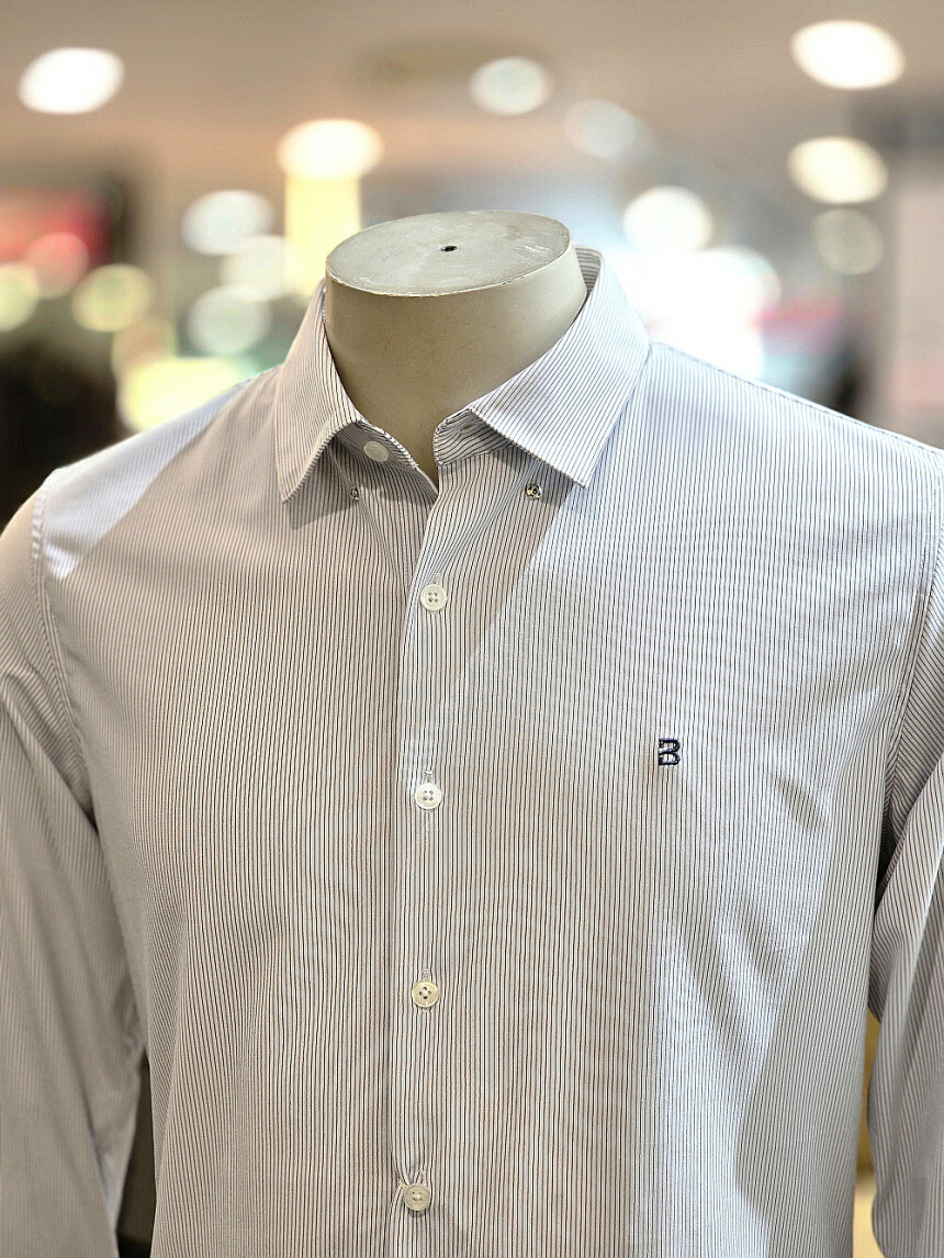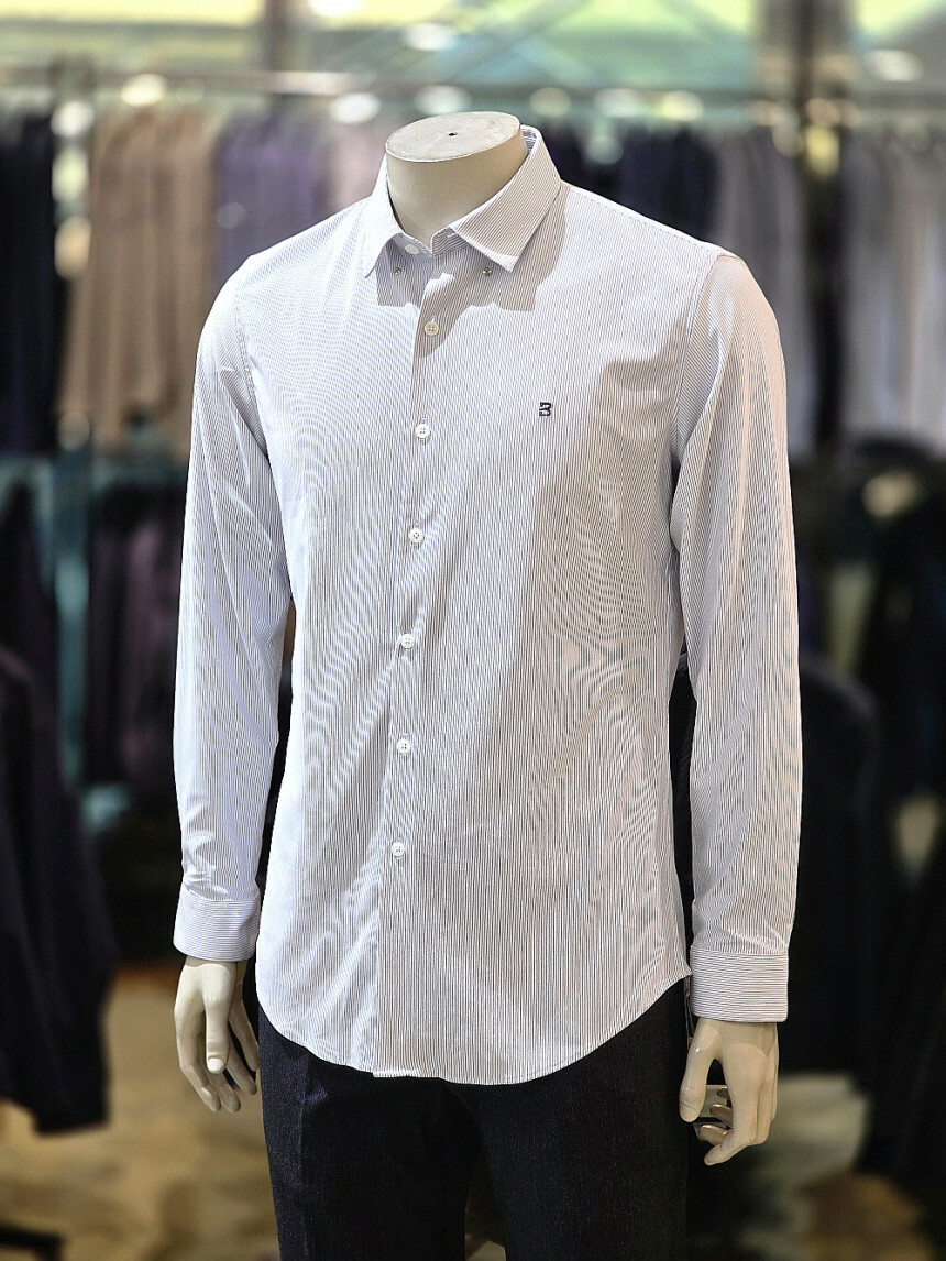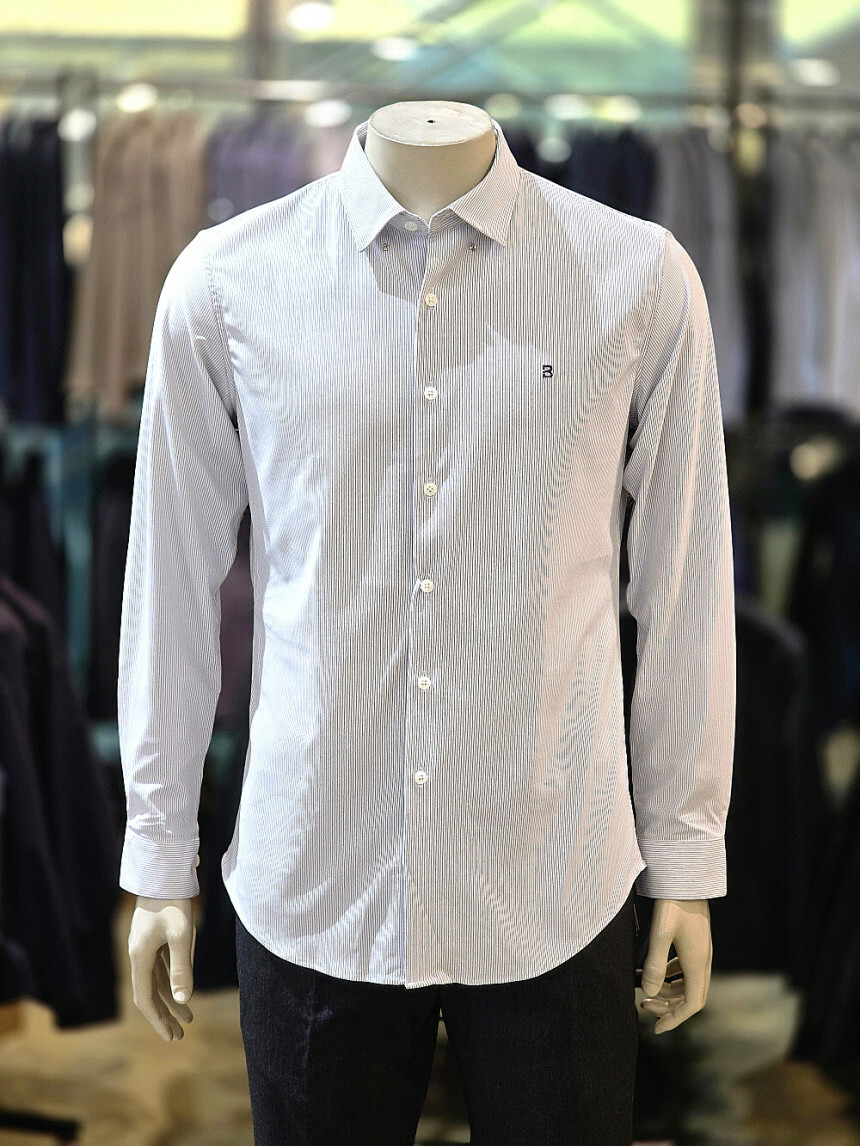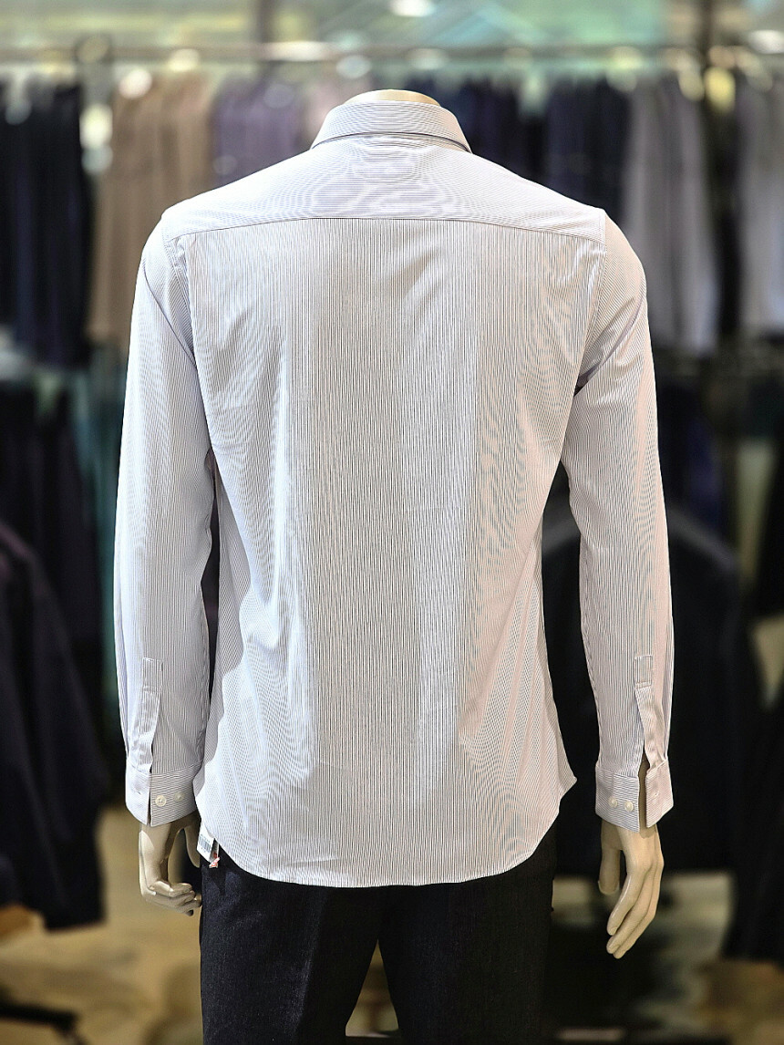 깔끔한 스트라이프 패턴의 드레스 셔츠로, 기본에 충실한 디자인이 특징입니다.