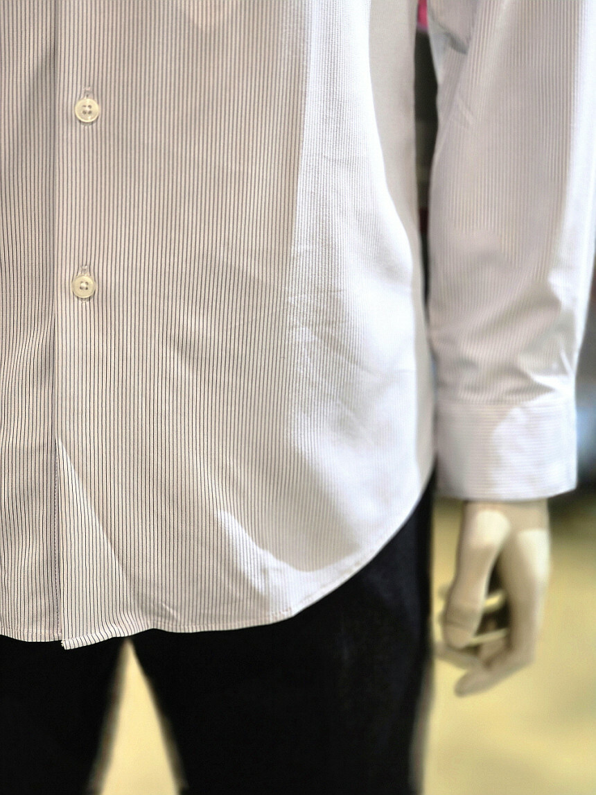 베이직한 화이트 베이스에 은은한 스트라이프가 더해져 포멀룩부터 비즈니스 캐주얼까지 다양하게 활용할 수 있습니다.