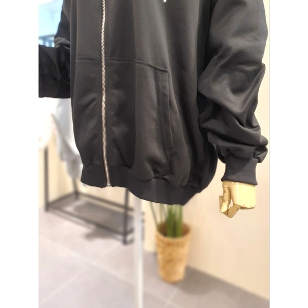 지퍼를 올리면 밑단 시보리가 있어 안으로 넣어 착용 가능합니다. 주머니 있습니다.