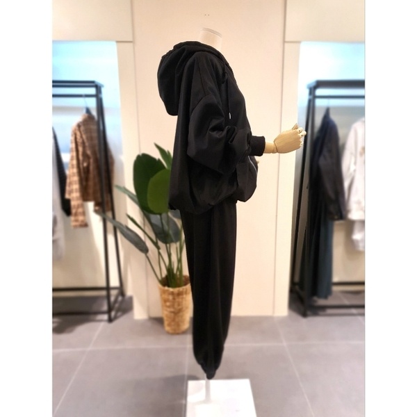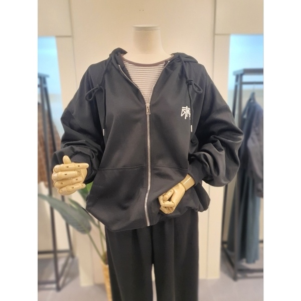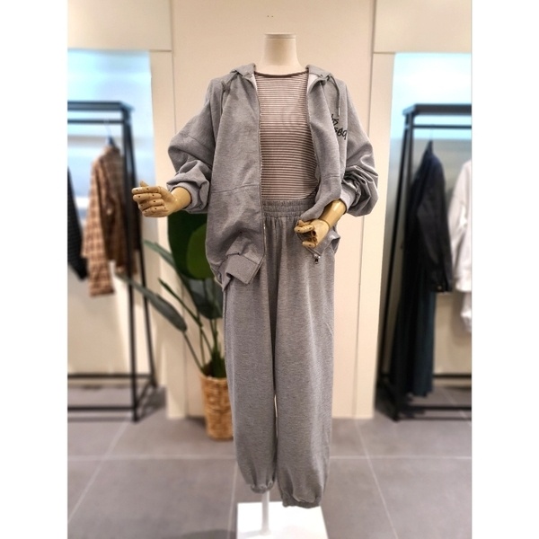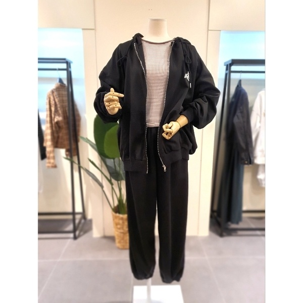 여유있는 사이즈의 후드집업 조거팬츠 세츠입니다.