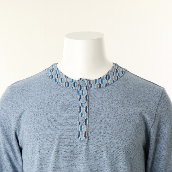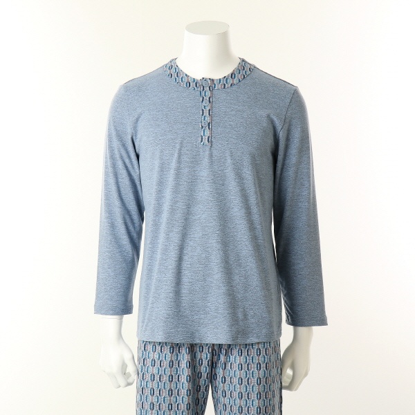 목둘레와 앞단추 부분 포인트 프린트가 산뜻하고 주머니가 있어 편리한 제품