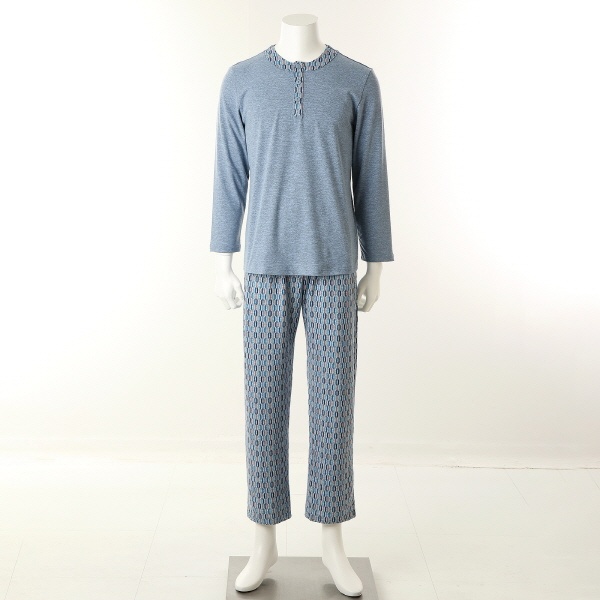 화사한 프린트의 하의가 매칭된 남성 이지웨어 세트로