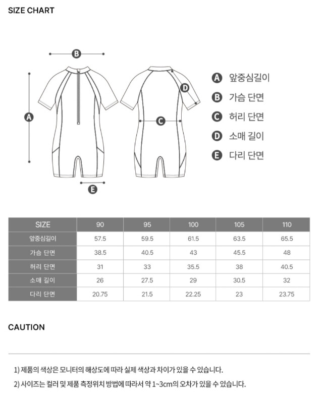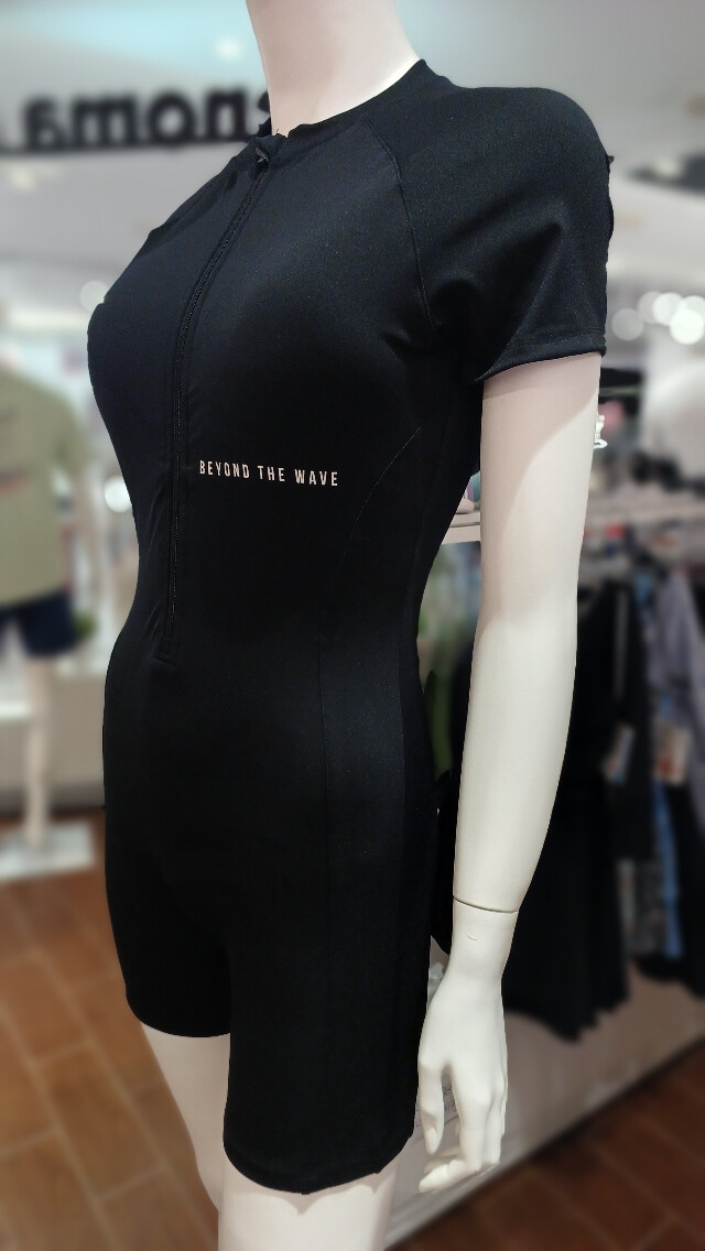 노출이 적은 디자인과 집업 패드 내장형으로 더욱 편하게 착용가능한 2.5부 반신수영복입니다.
