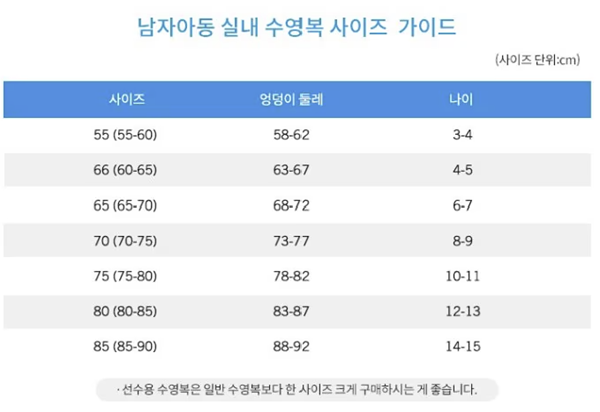 아동 수영복 같은 경우 사이즈 문의가 어렵습니다