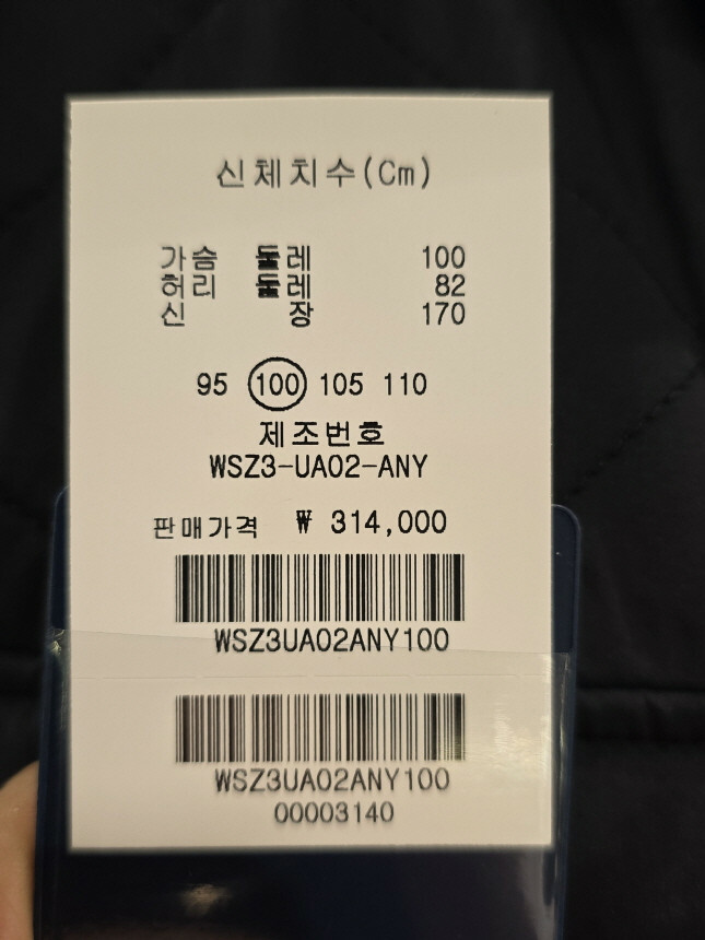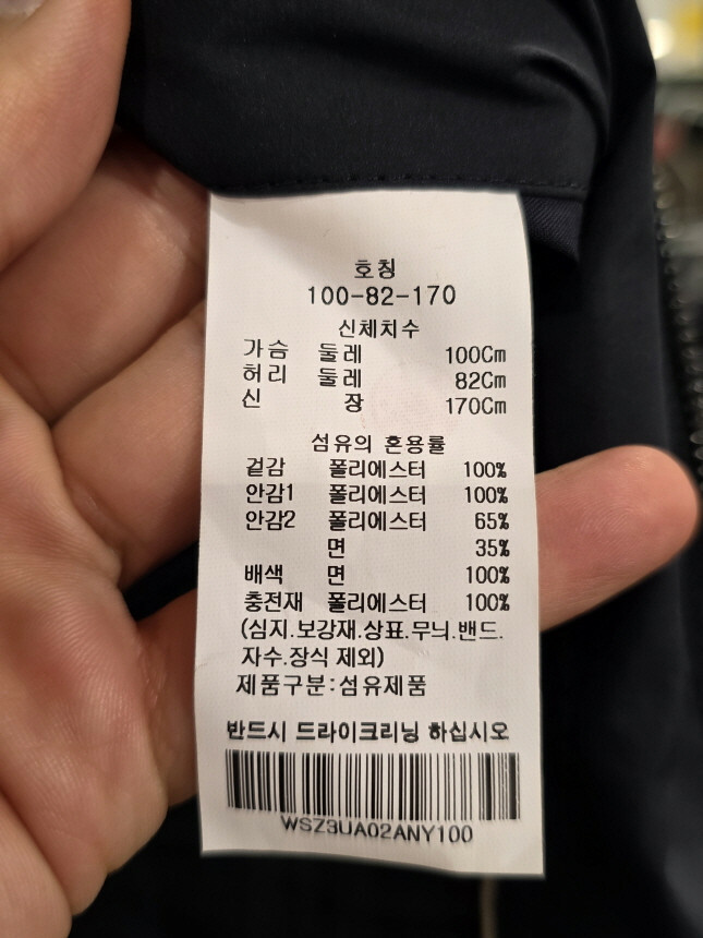 안감1 : 폴리에스터 100%