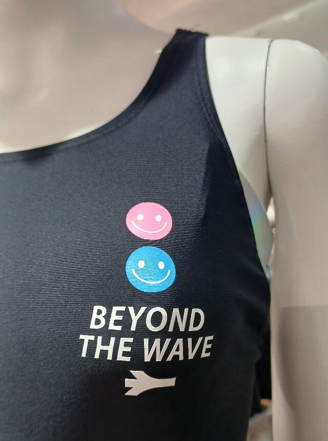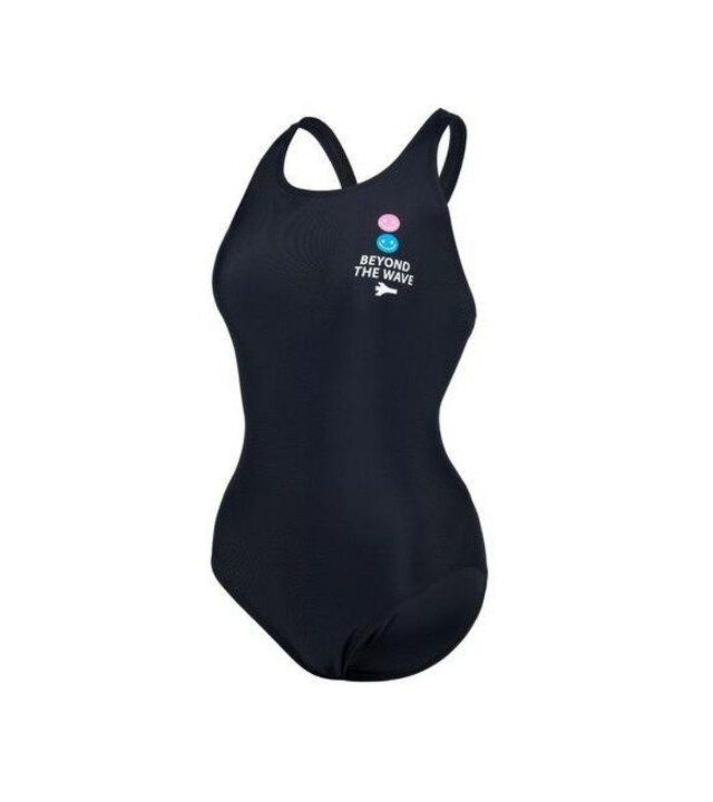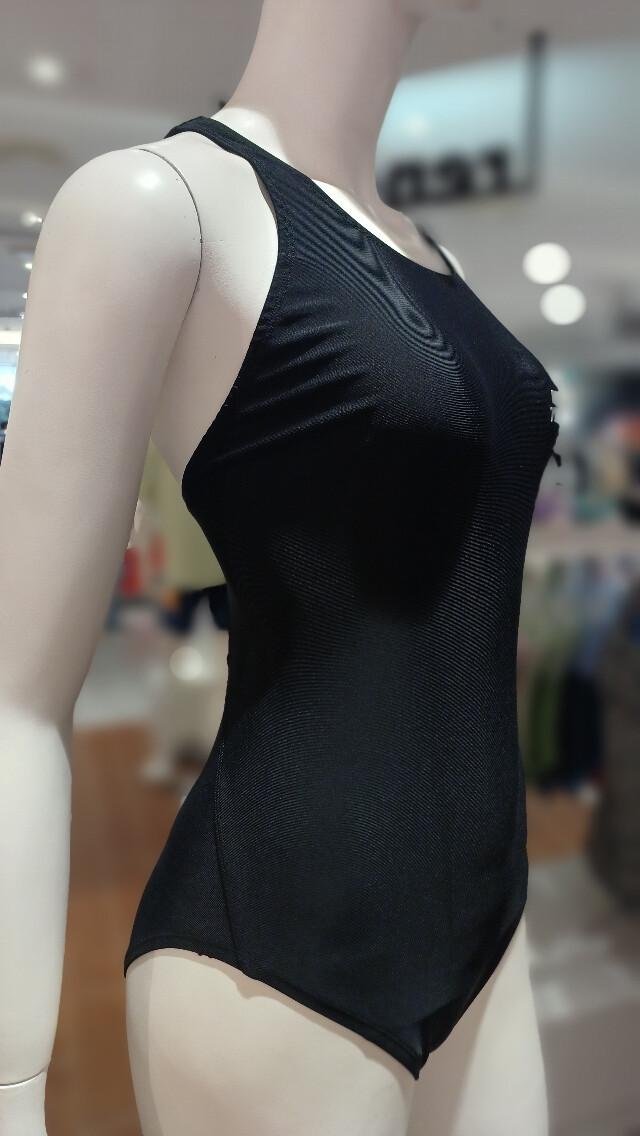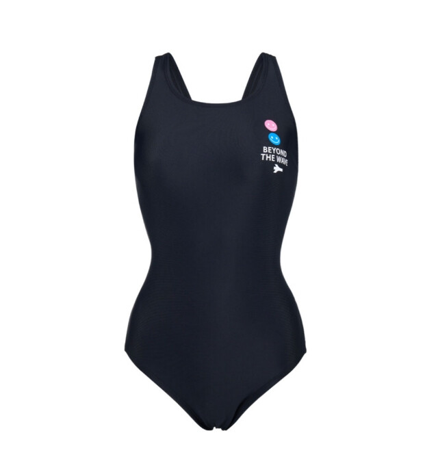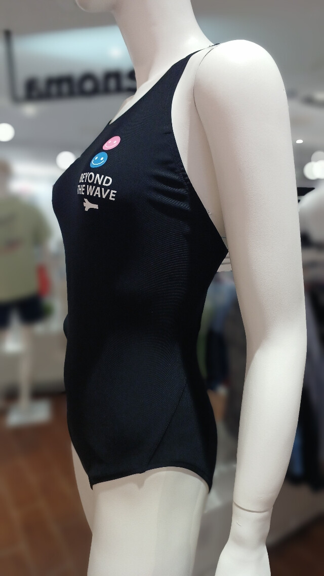 깔끔한 블랙 컬러에 스마일 프린트가 포인트 인 X백 원피스 수영복입니다 .