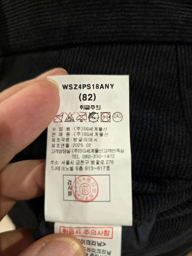 (심지,보강재,상표,무늬,밴드,자수,장식 제외)