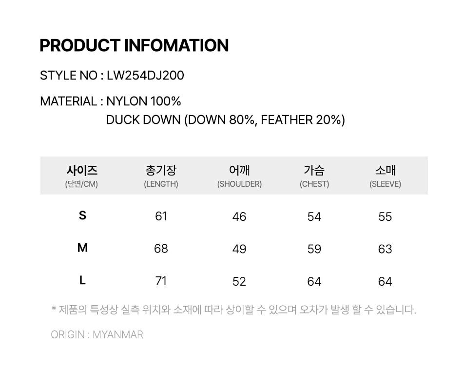 제품 설명가볍고 부드러운 촉감의 나일론 소재로 이루어진 경량 다운 점퍼