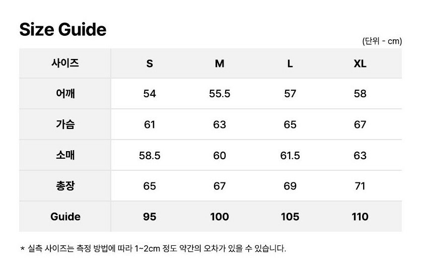 사이즈 : 95(S),100(M),105(L),110(XL)