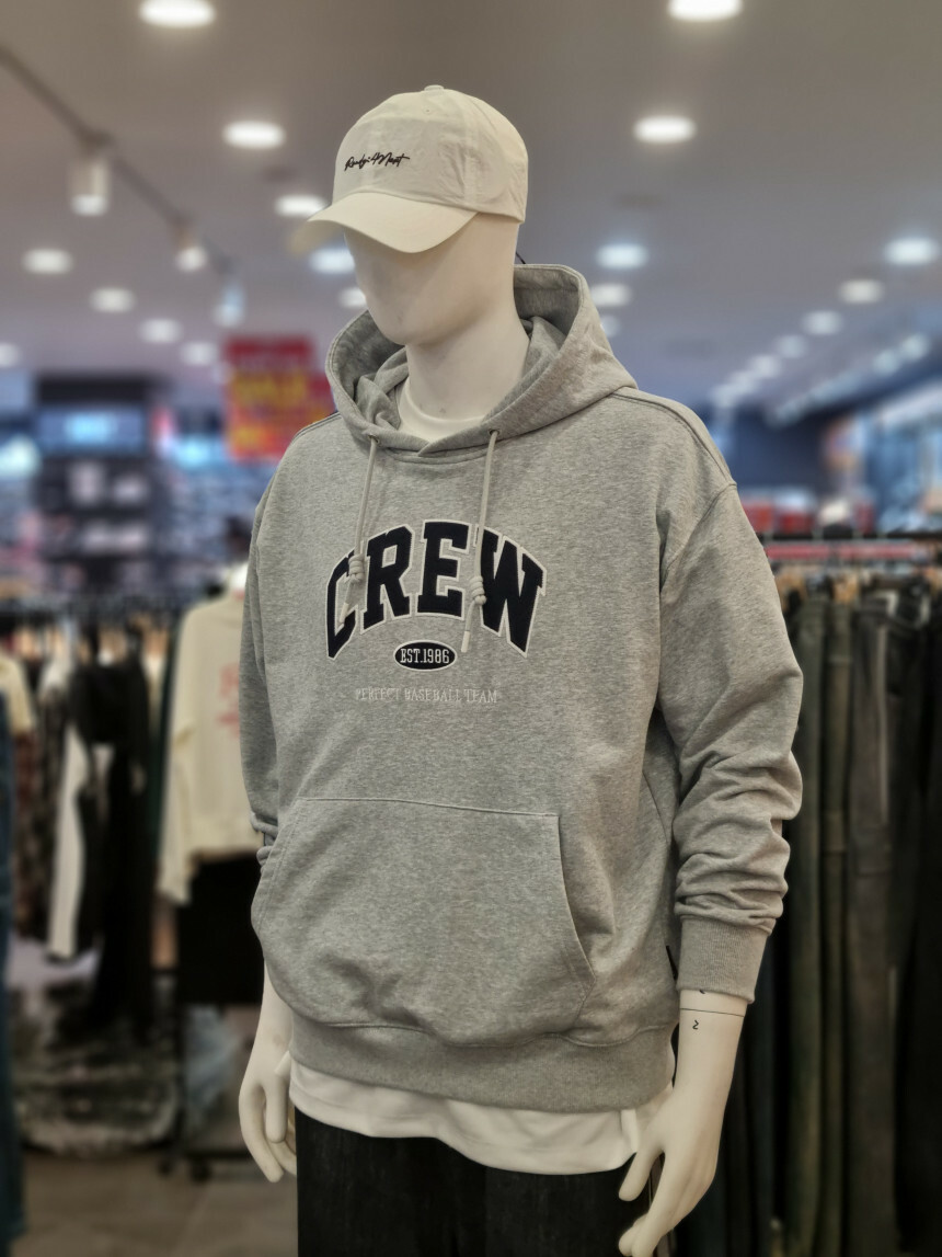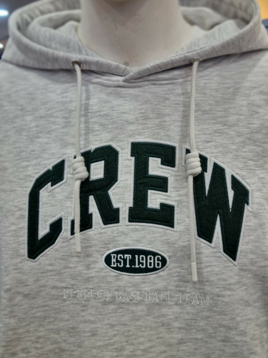 CREW 자수 로고 후드 티셔츠 입니다