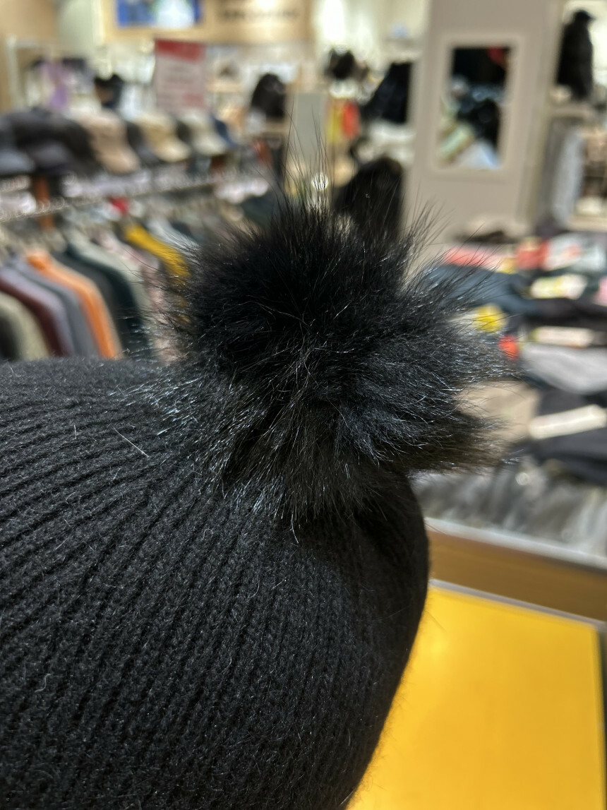 고급스러운 여성 니트 천연모피 방울 모자!!