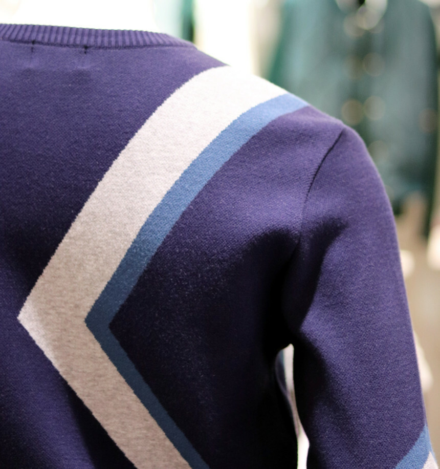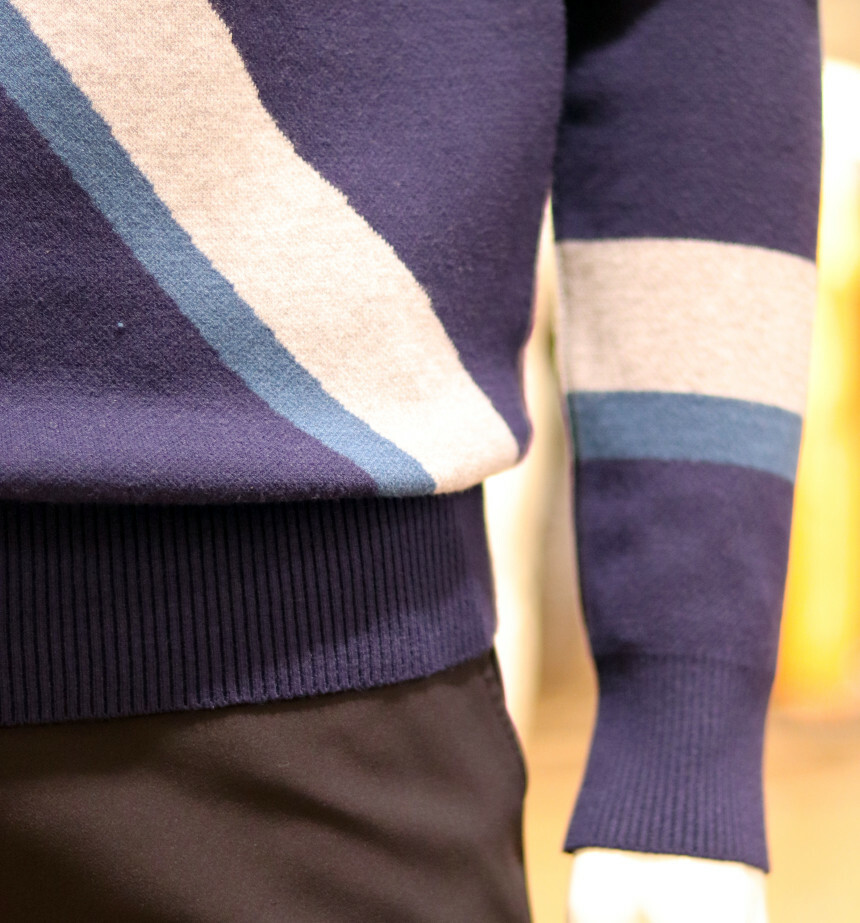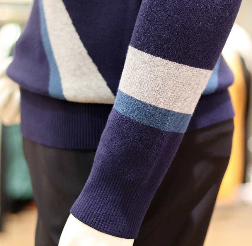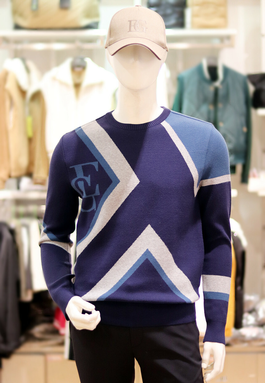 활용하시기 좋은 빅패턴의 풀오버 자가드 라운드 스웨터입니다