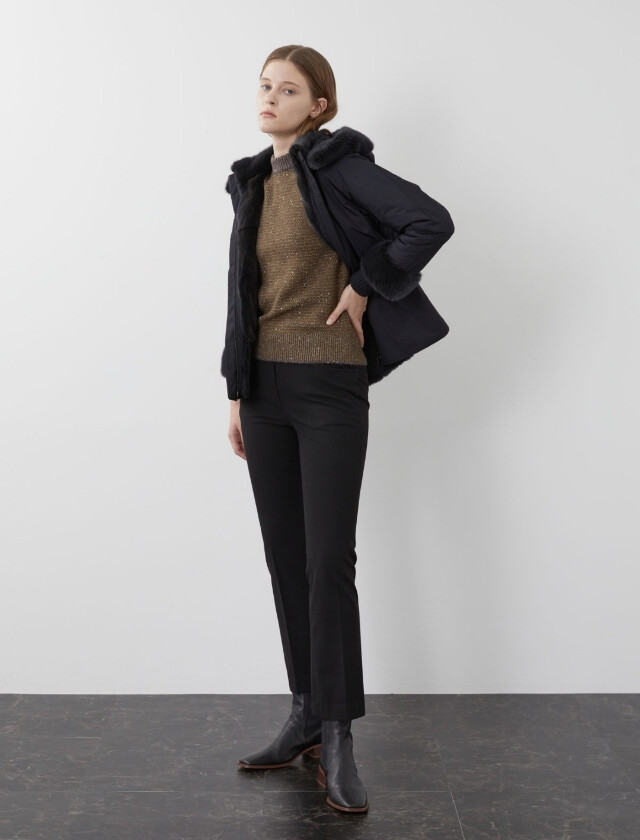 밍크가 넥션을 감싸주여 여성스러우면서 감각적은