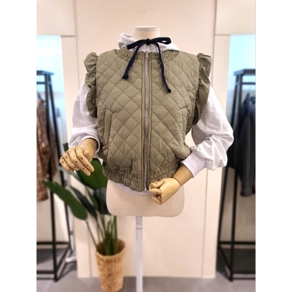 귀여운 셔링 포인트의 패딩 베스트입니다.