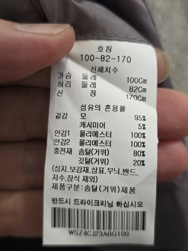 충전재 : 거위솜털 80% , 거위깃털 20%