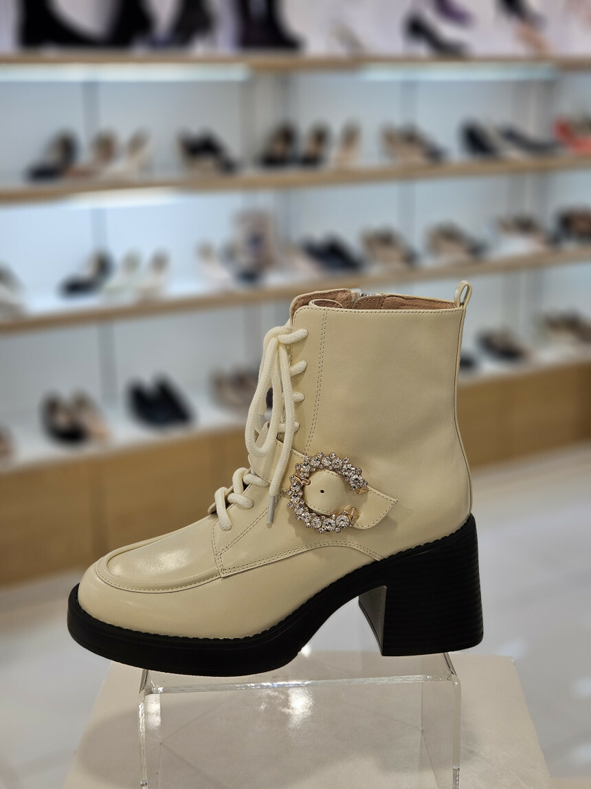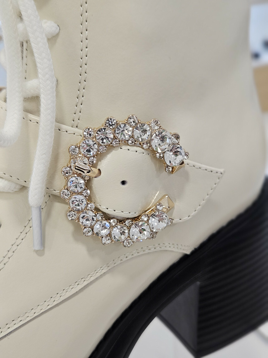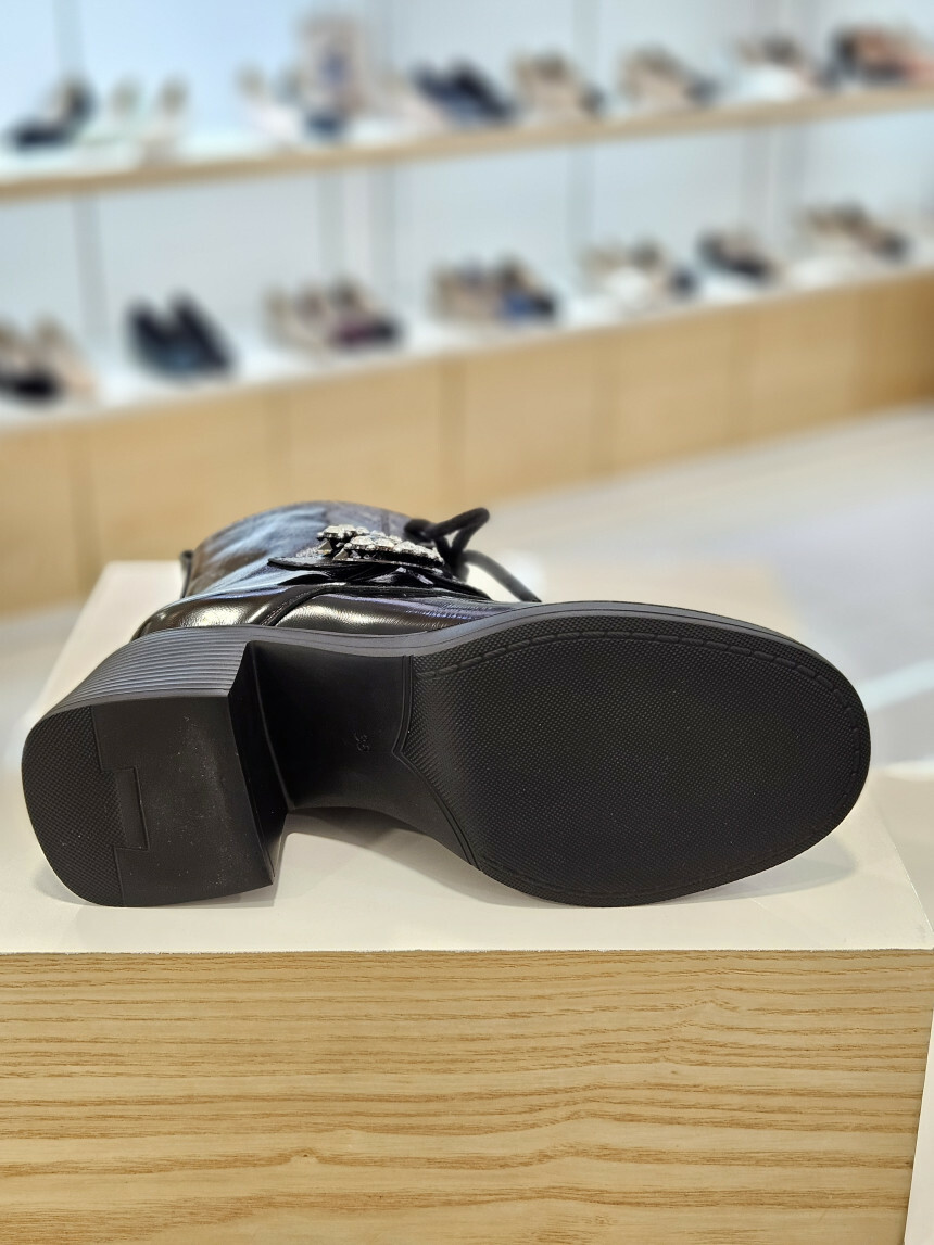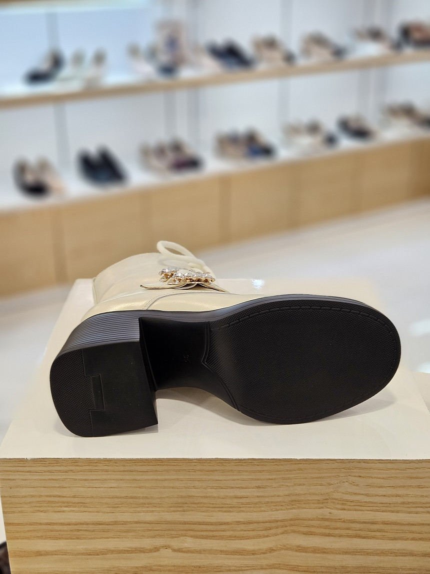 큐빅이 화려하게 장식되어 있는 고급스러운 디자인의 부츠입니다