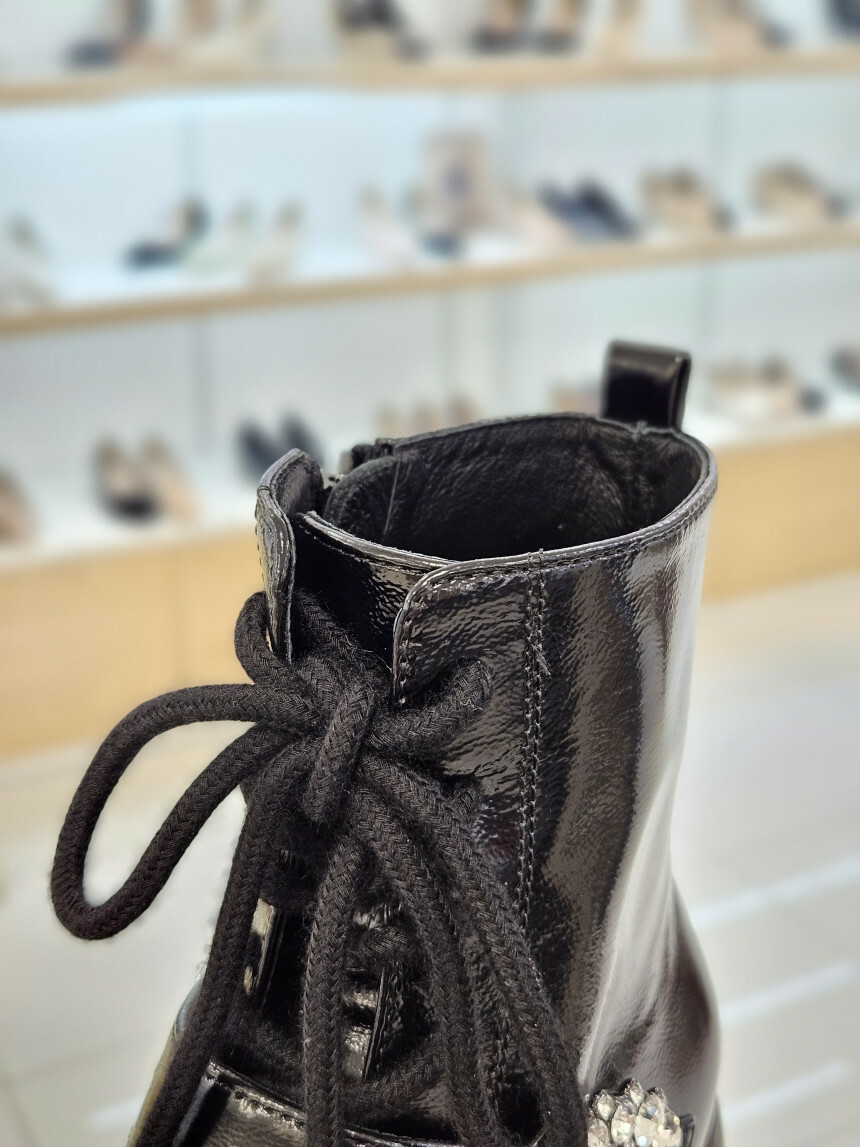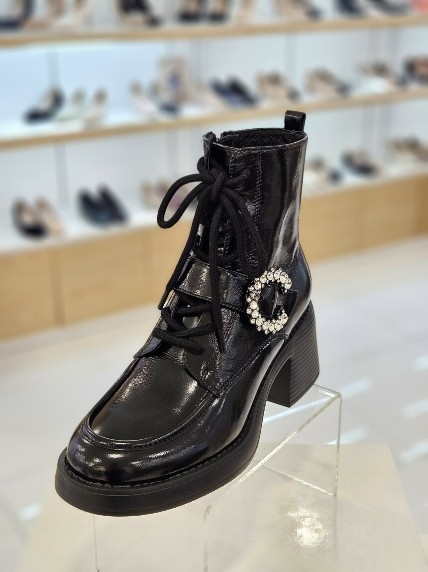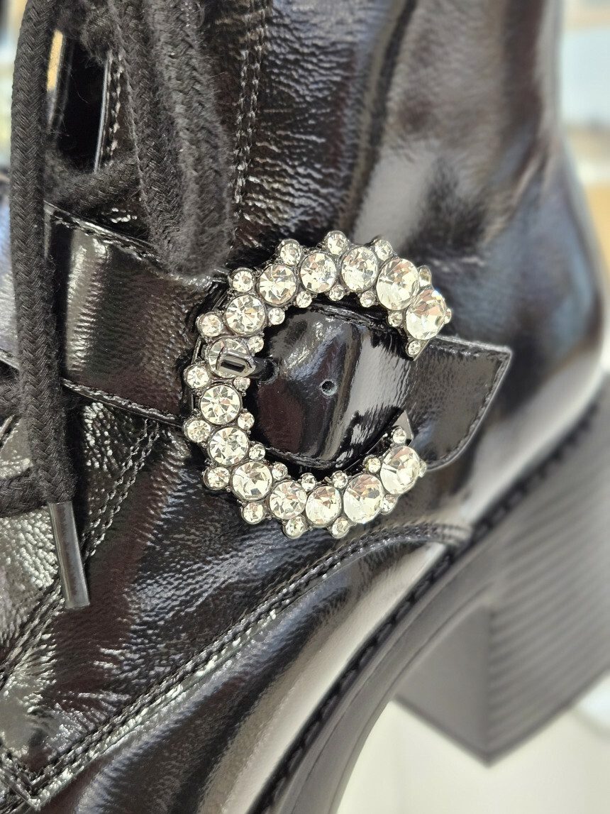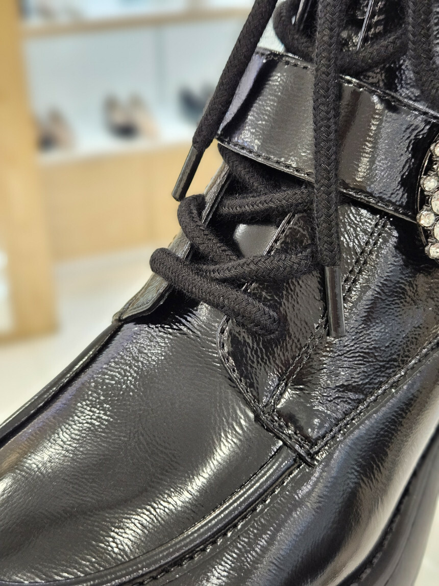 큐빅이 화려하게 장식되어 있는 고급스러운 디자인의 부츠입니다