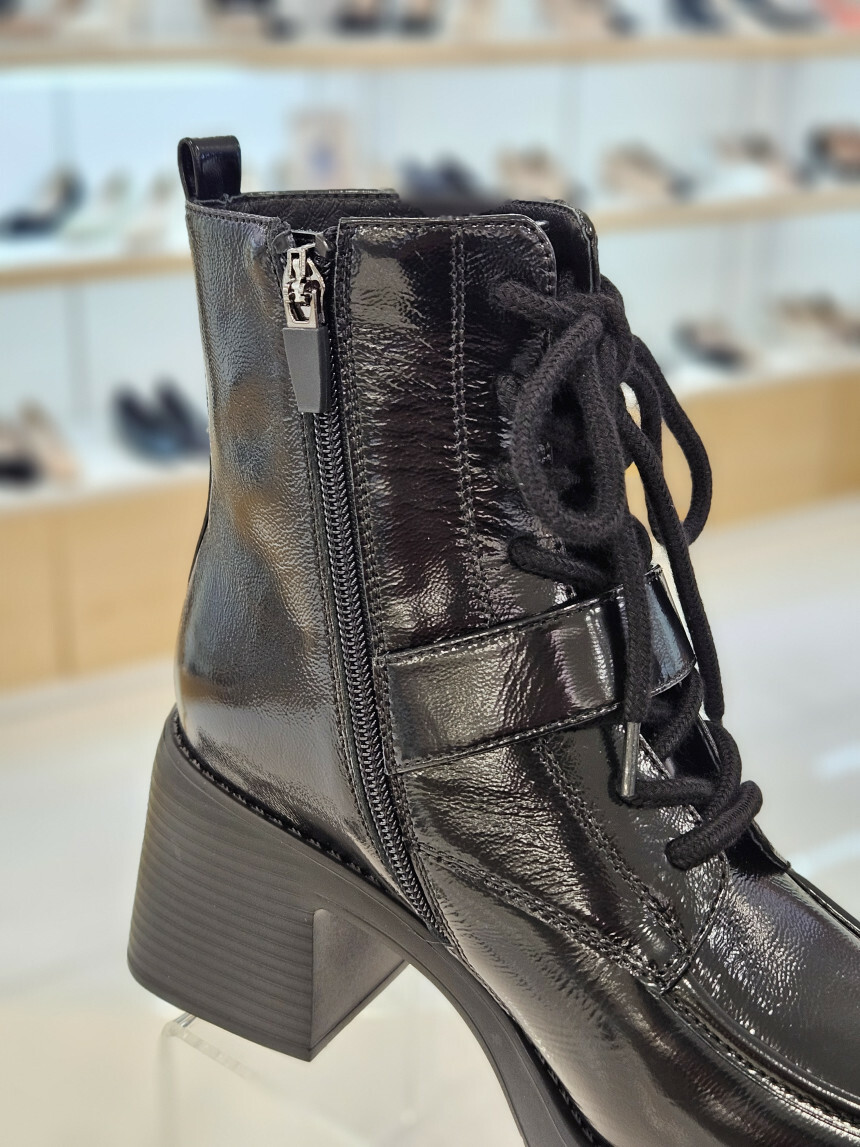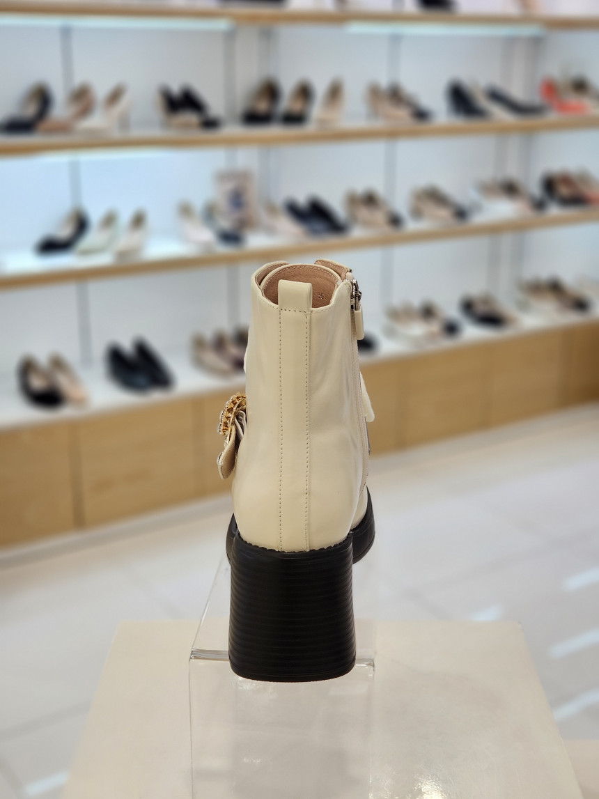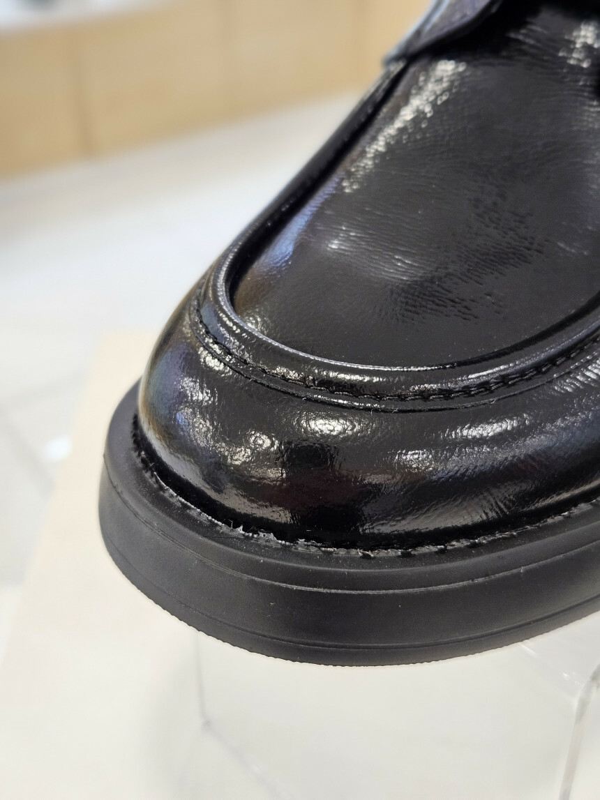 광택감이 있는 소가죽으로 제작되어 깔끔한 느낌이 물씬 나는 앵클부츠입니다